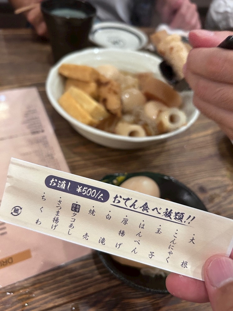 ここのおでん🍢お通し代¥500で食べ放題