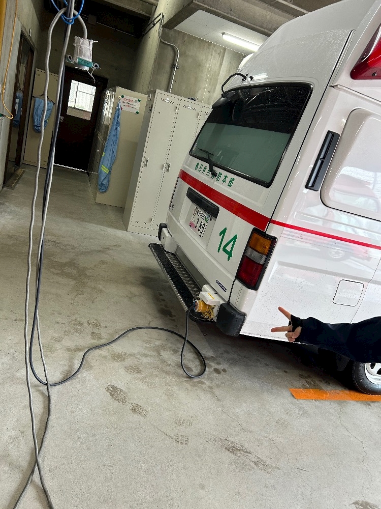 出動して帰ってきた救急車を充電🔌