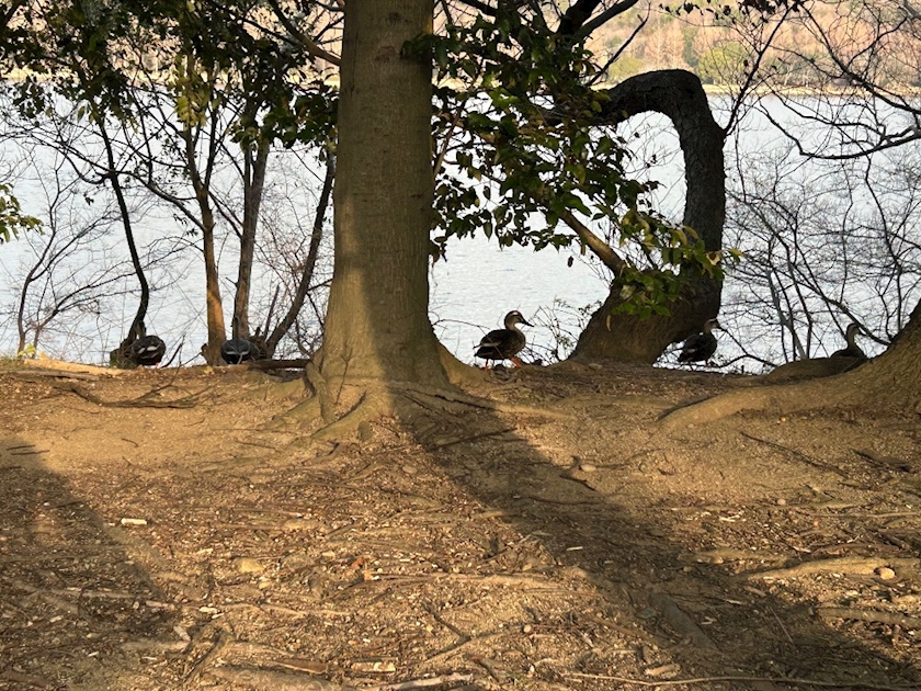 湖から鴨があがってきてた🦆