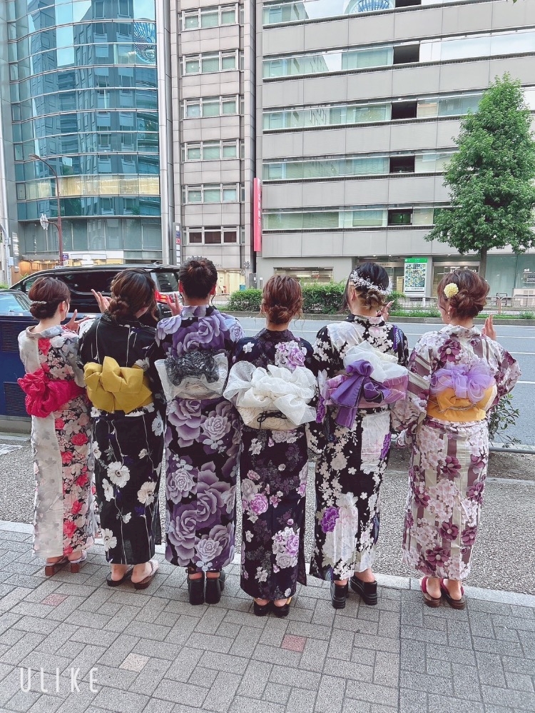 夕方にみんなで美容院に着付けに行って、みんなで写真を撮りました🩷