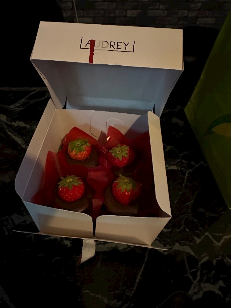 抹茶のケーキとオードリーのイチゴチョコ美味しく頂きました❤️