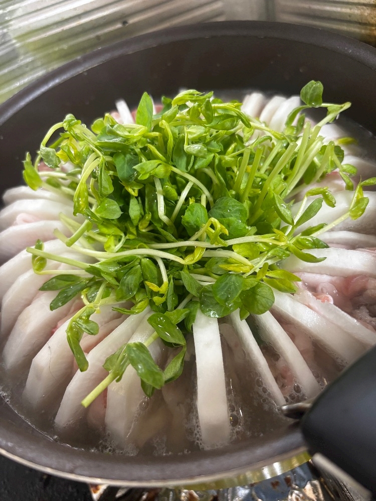 大根と豚肉のとろろ明太ミルフィーユ鍋を