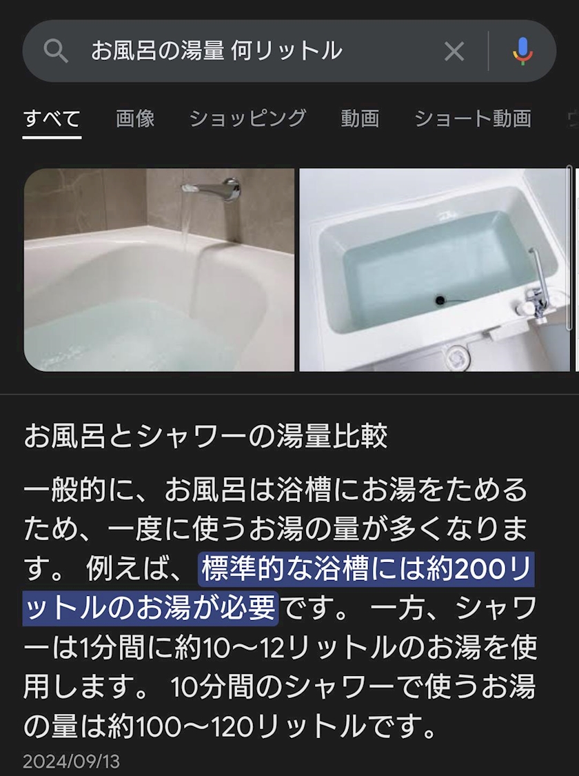 ちなみに湯量200は理解してたけど