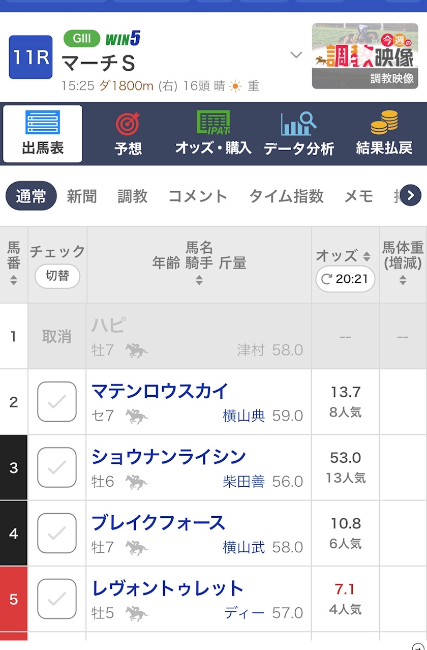 ハピ明日出走取り消しだって...