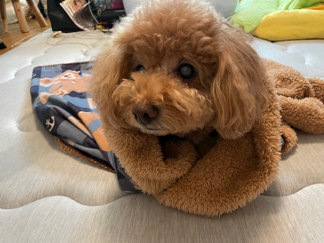 うちの犬モコモコなのに毛布の下に服も着てる👔
