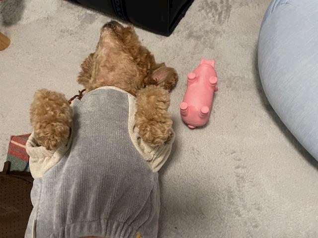 豚のぬいぐるみとうちの犬