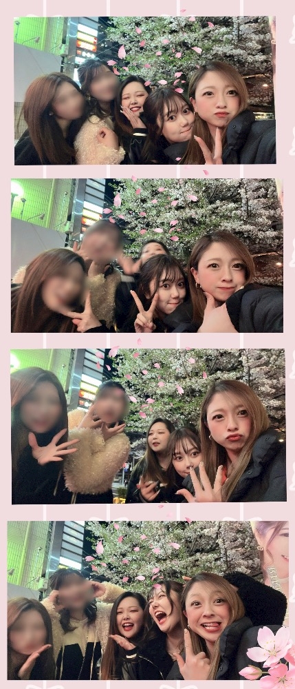 店前の桜🌸と私たち〜🎀💕