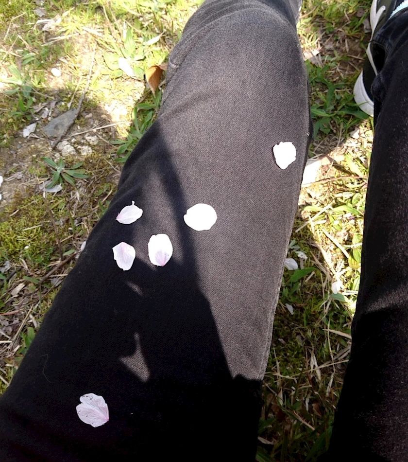 落ちてきた花びらを拾って