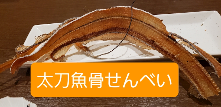 長ーい骨せんべいと、小鉢。