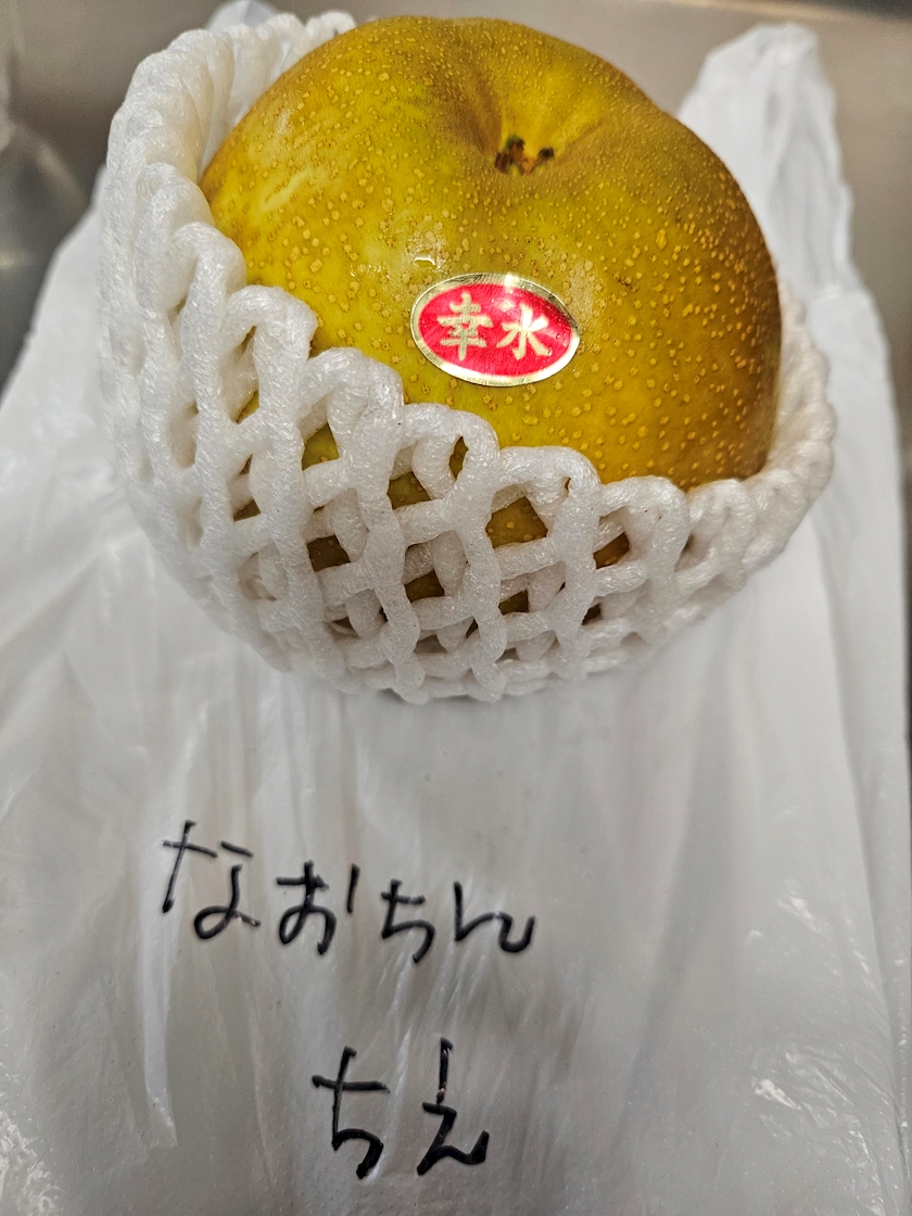 梨、持ってきてくれたよ🎵って聞いて