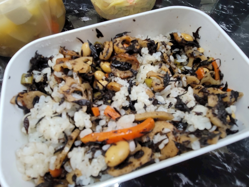 やっと、今日でひじき飯と