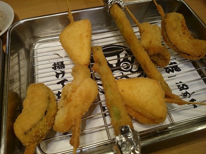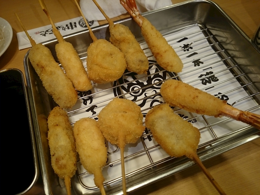 串カツ、鶏、焼売、牛タン、海老