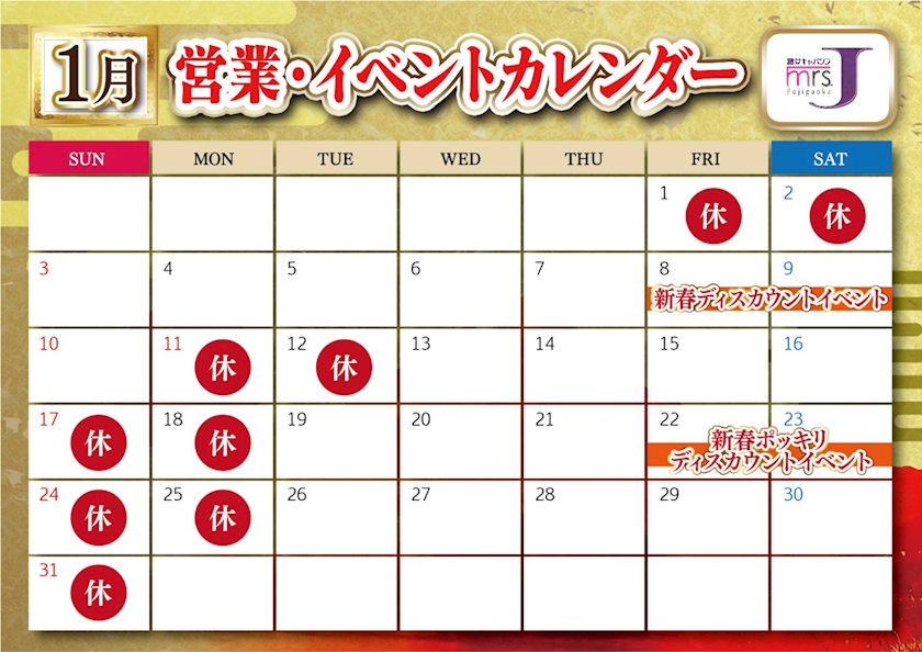 本日ミセスJ藤が丘店定休日となっております