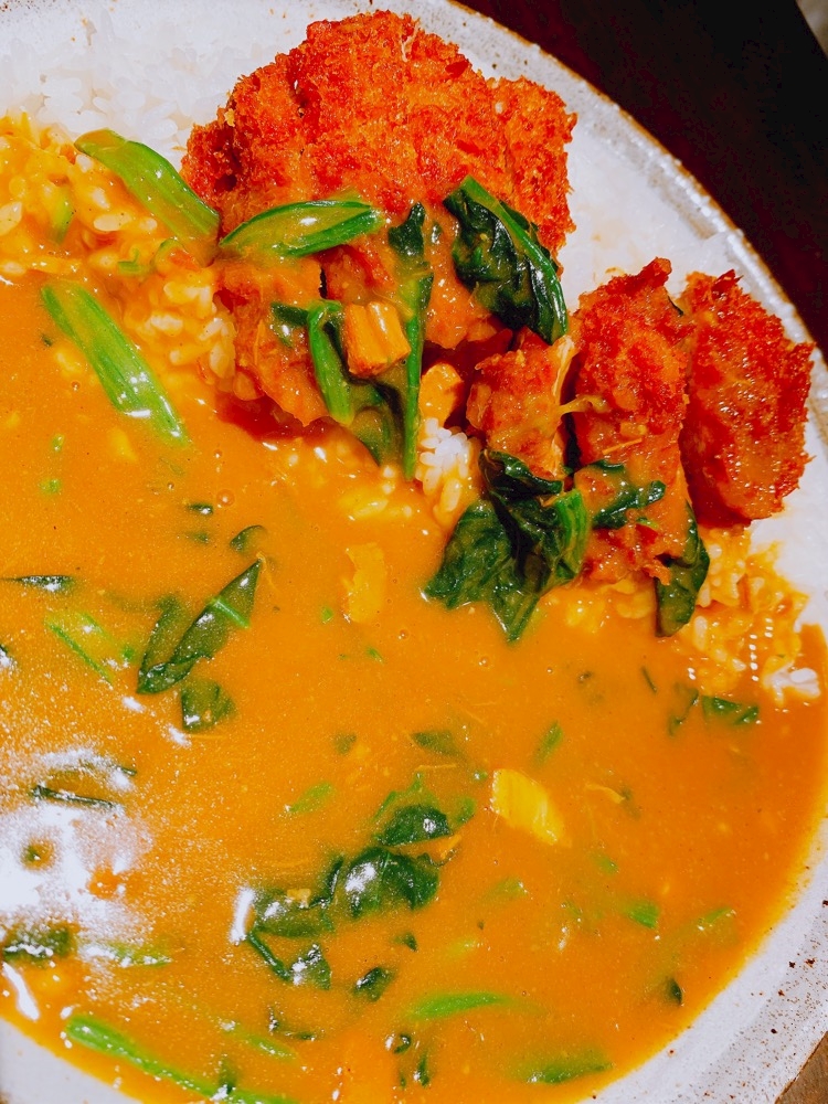 ヒレカツ&ほうれん草カレー