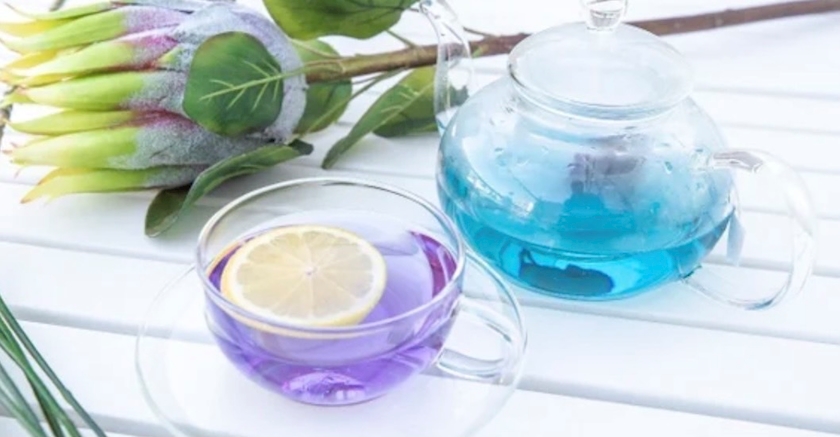 レモン汁を数滴入れるとラベンダー色に変わるんですって