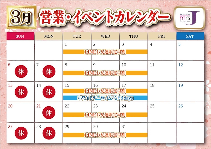本日ミセスJ藤が丘店定休日となっております