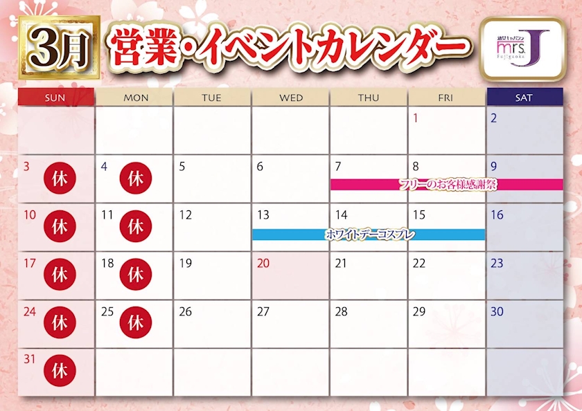 ミセスJ藤が丘店本日定休日となっております