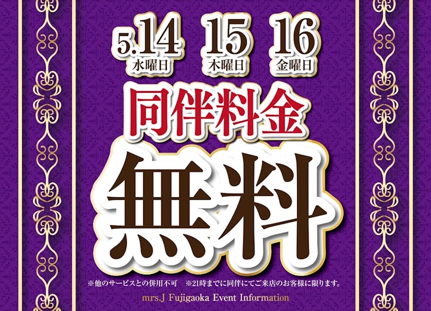 14日〜16日までの3日間同伴無料イベントです🥳