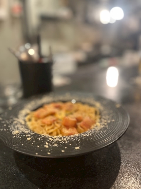 厚切りベーコンのカルボナーラ