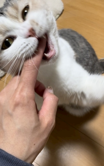 飼い主の指まで食べてました😂