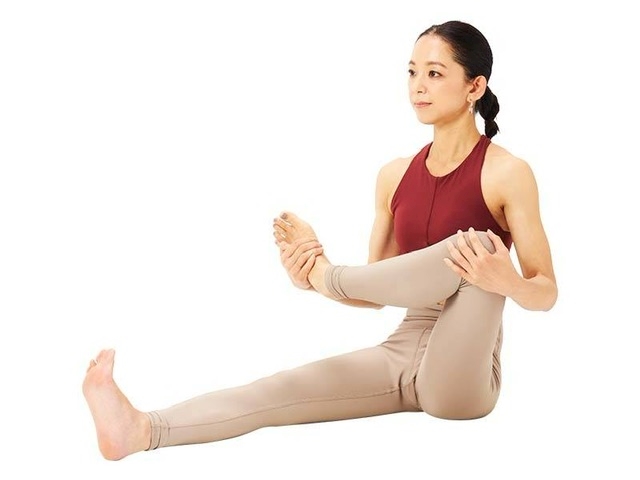 足を両手で横に抱えて