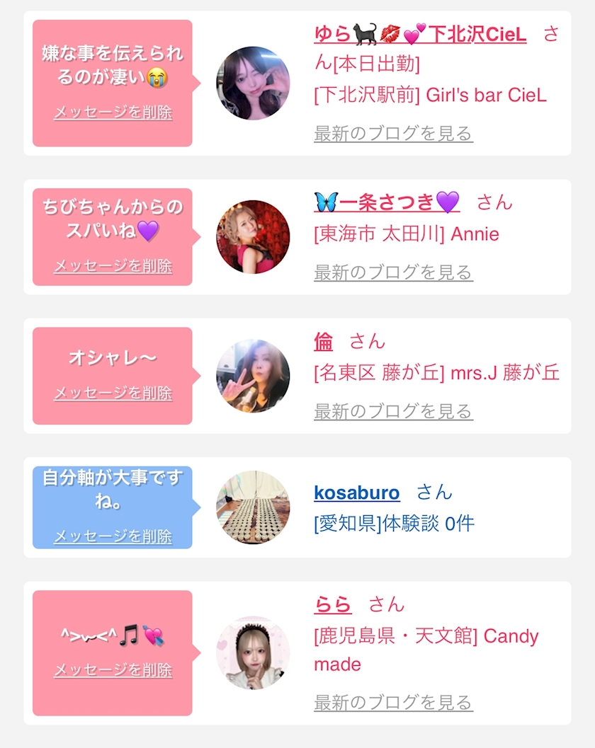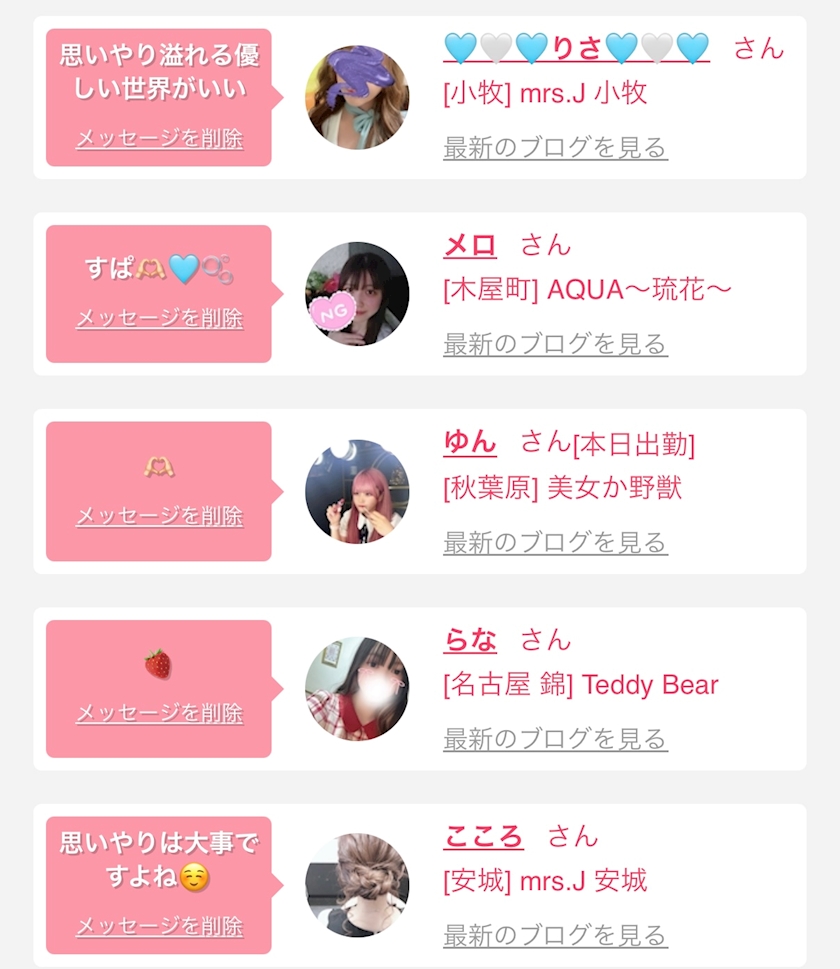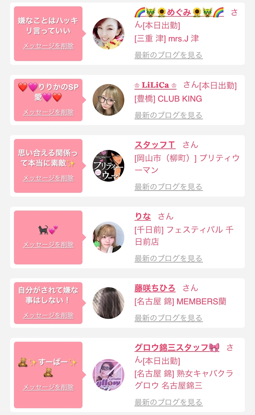 お店の出勤キャストを