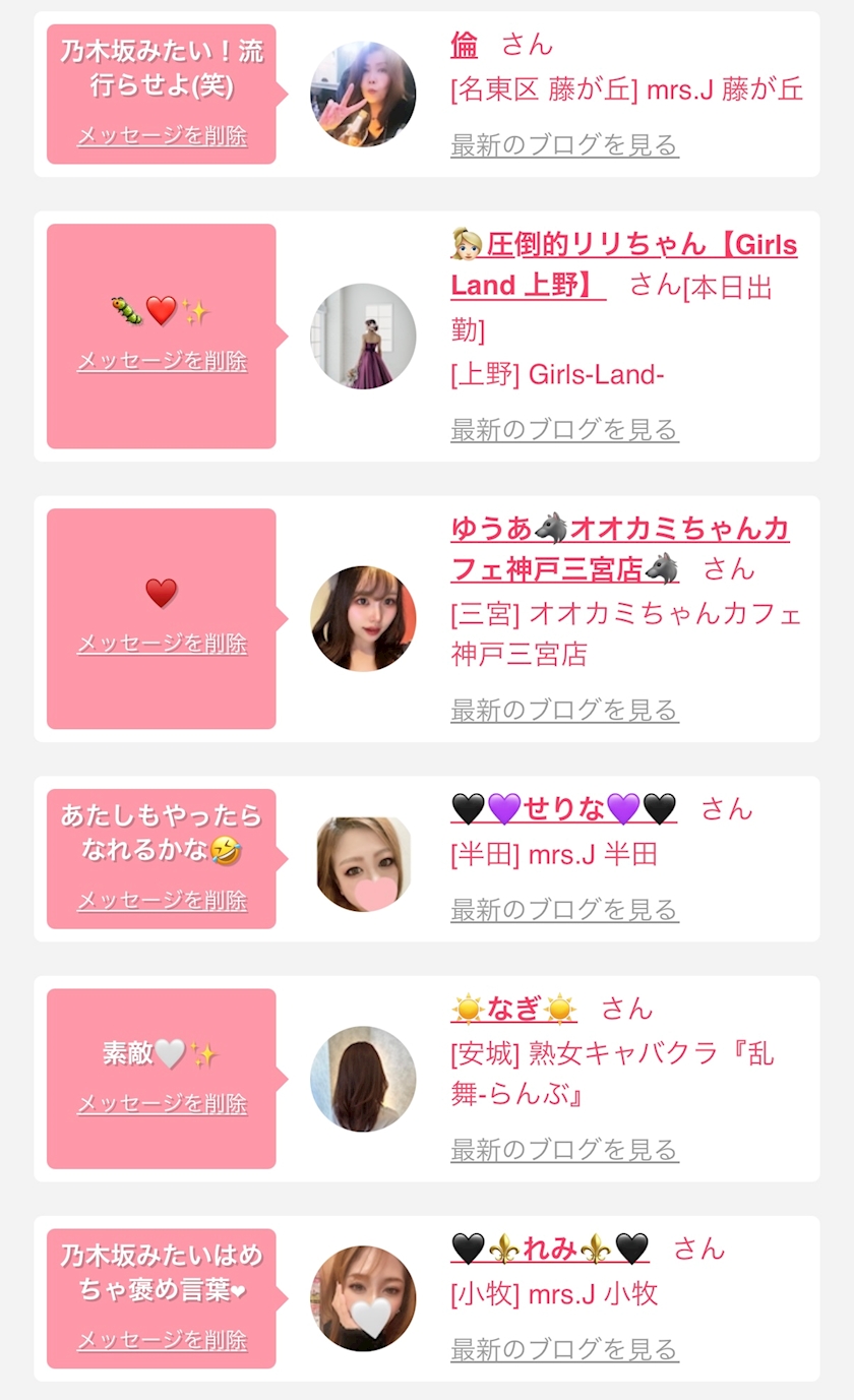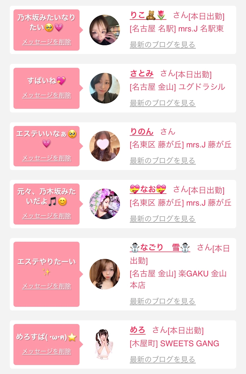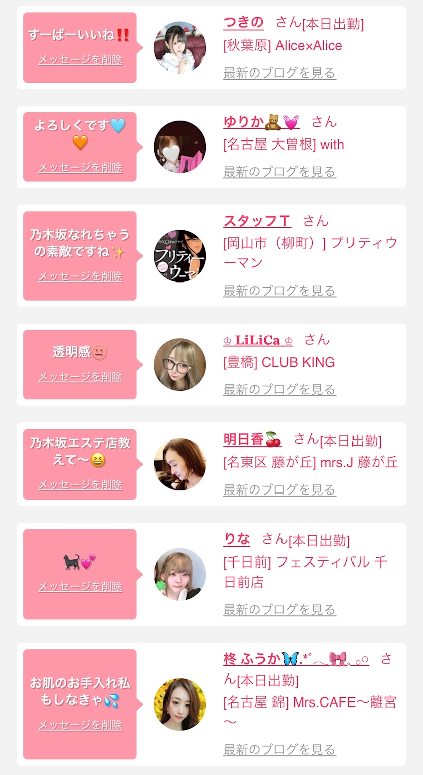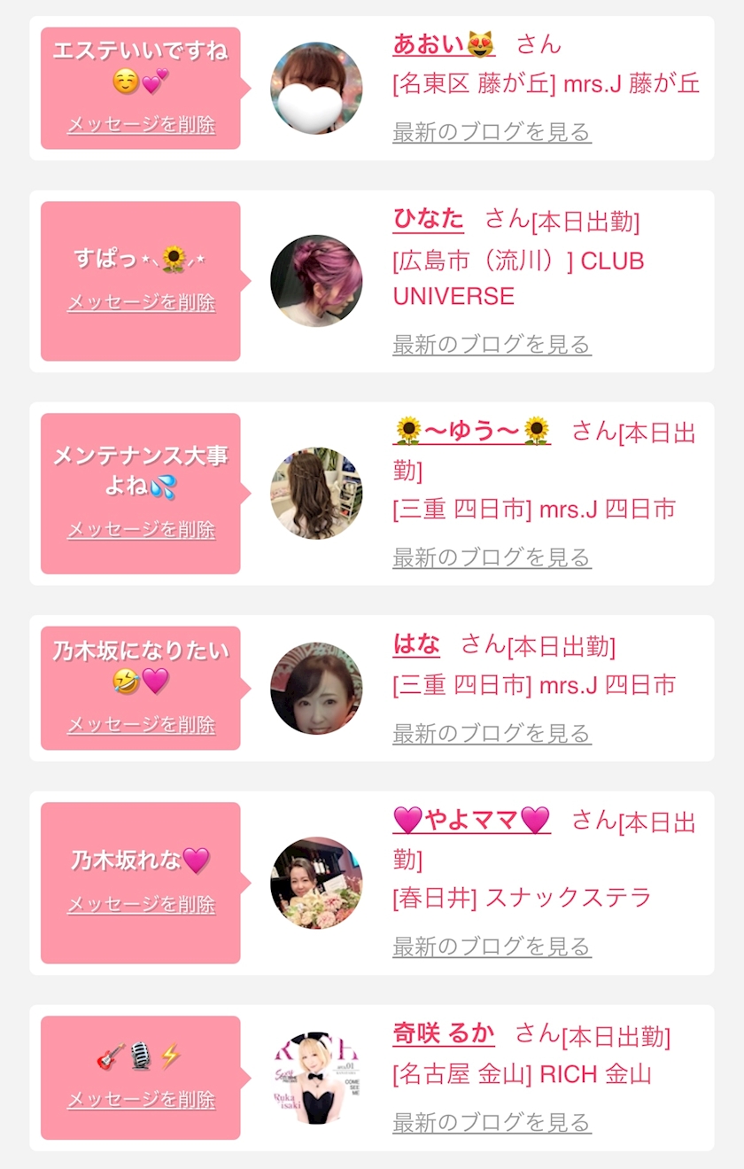 お店の出勤キャストを