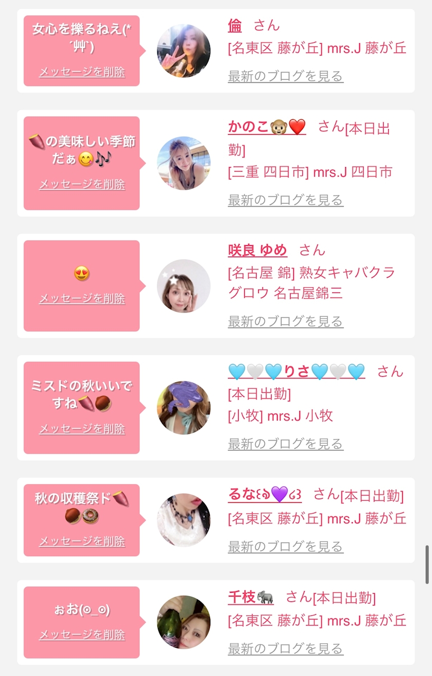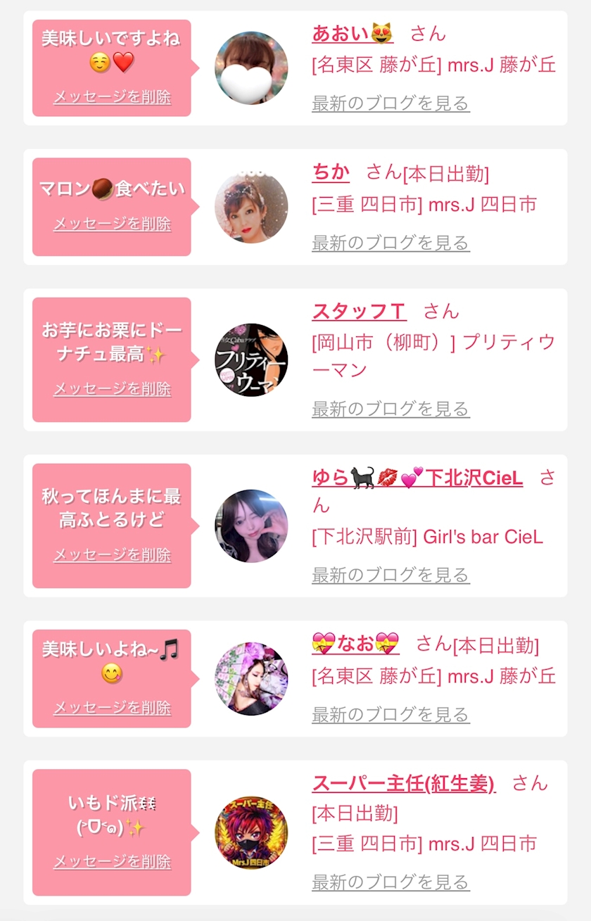お店の出勤キャストを