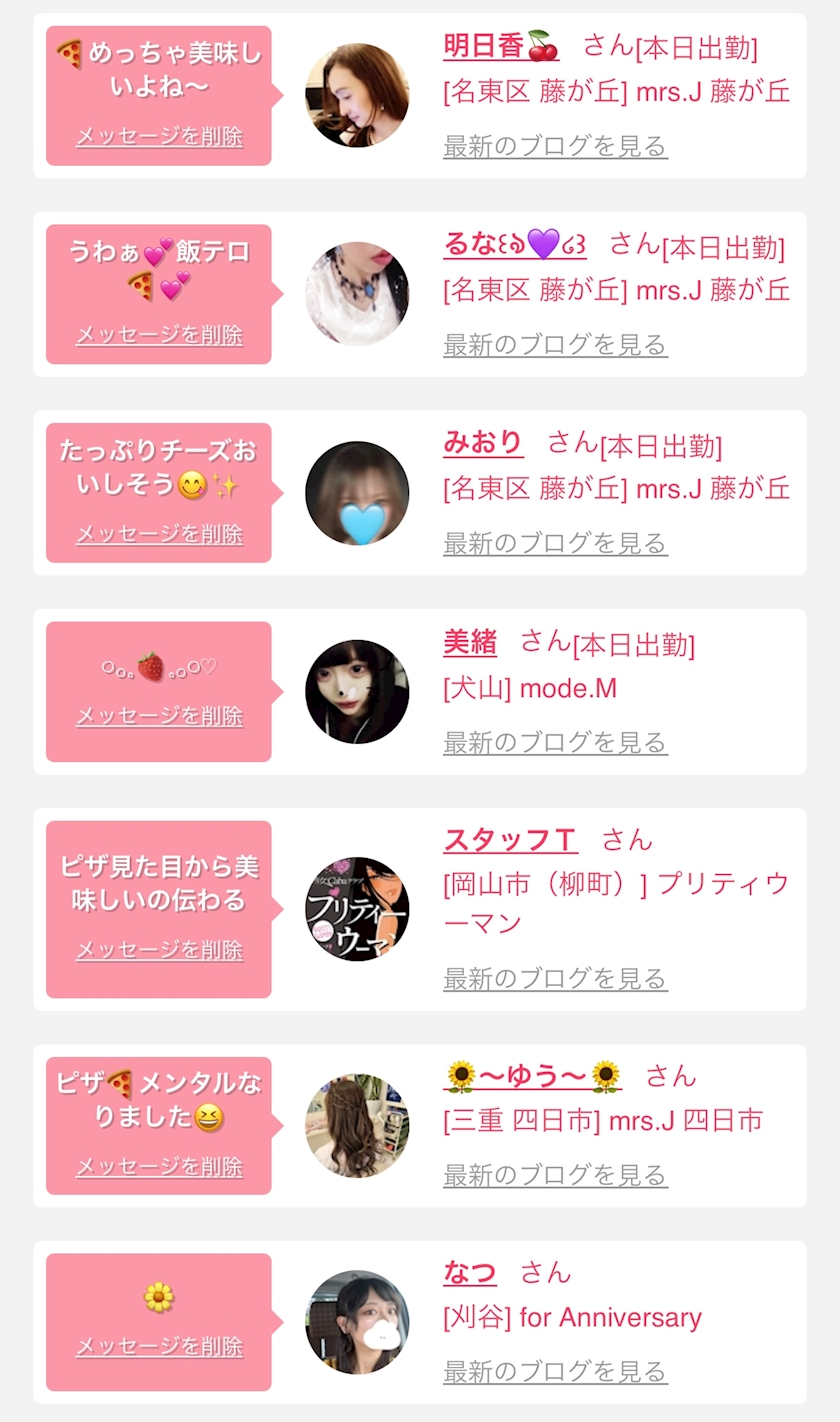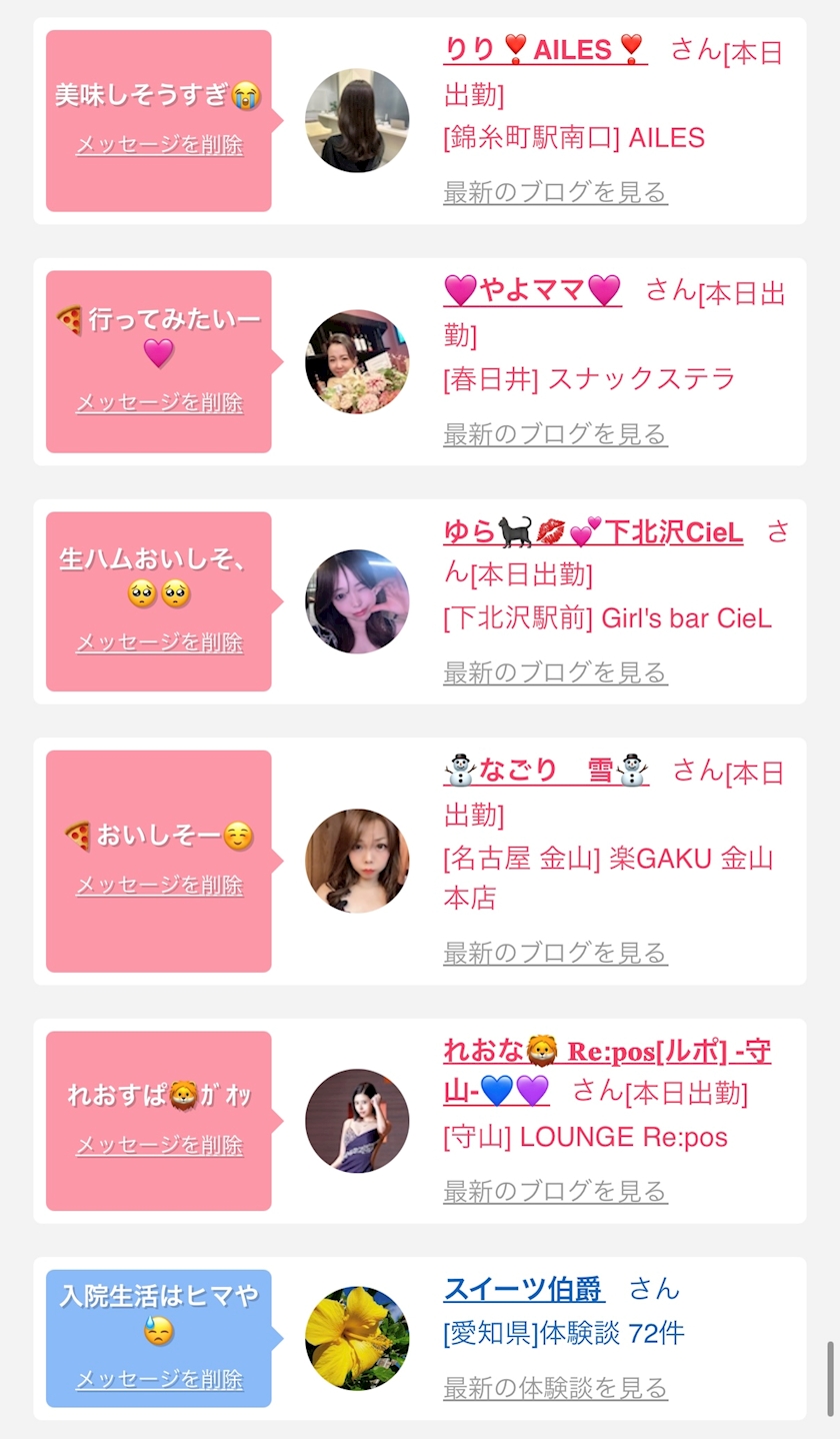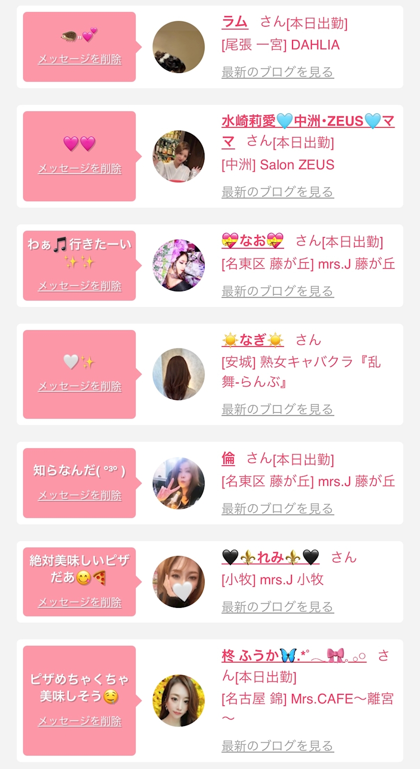 お店の出勤キャストを