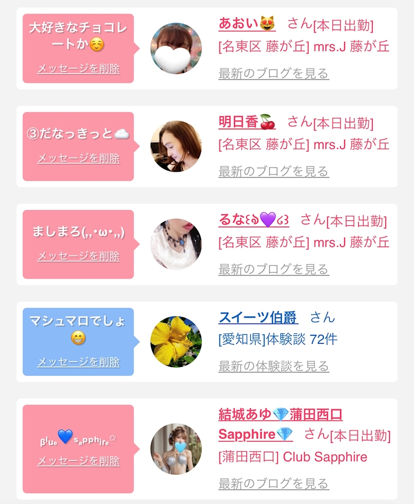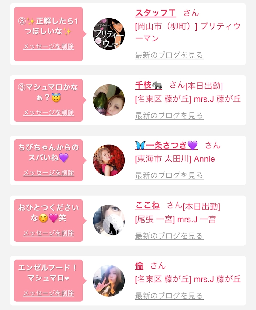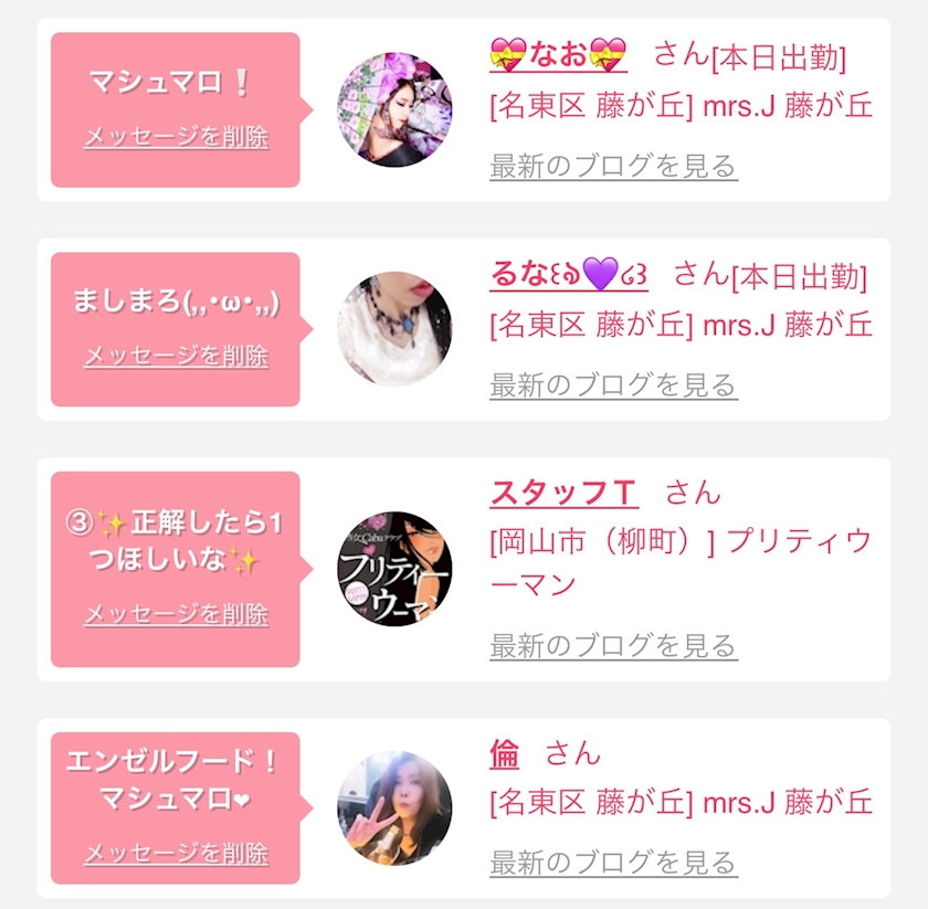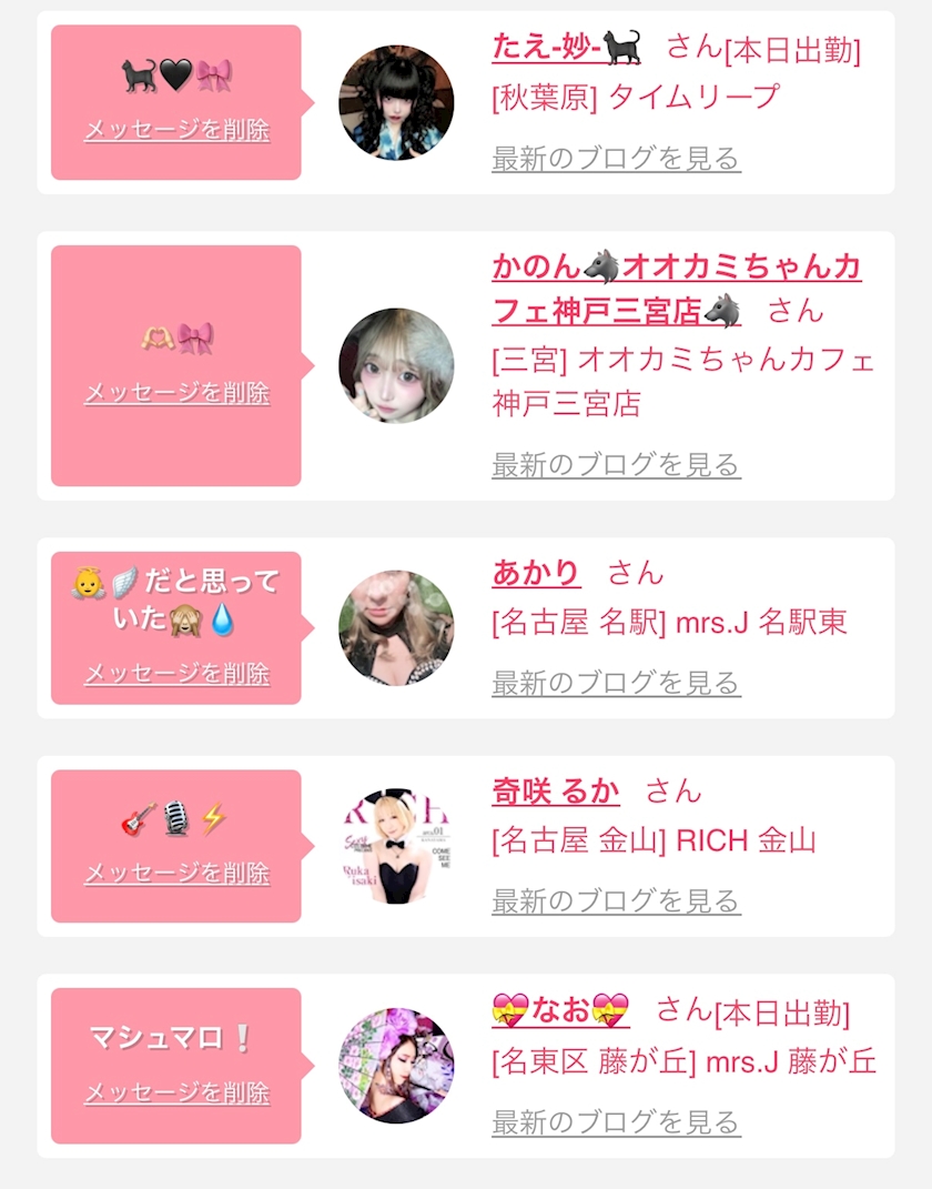お店の出勤キャストを
