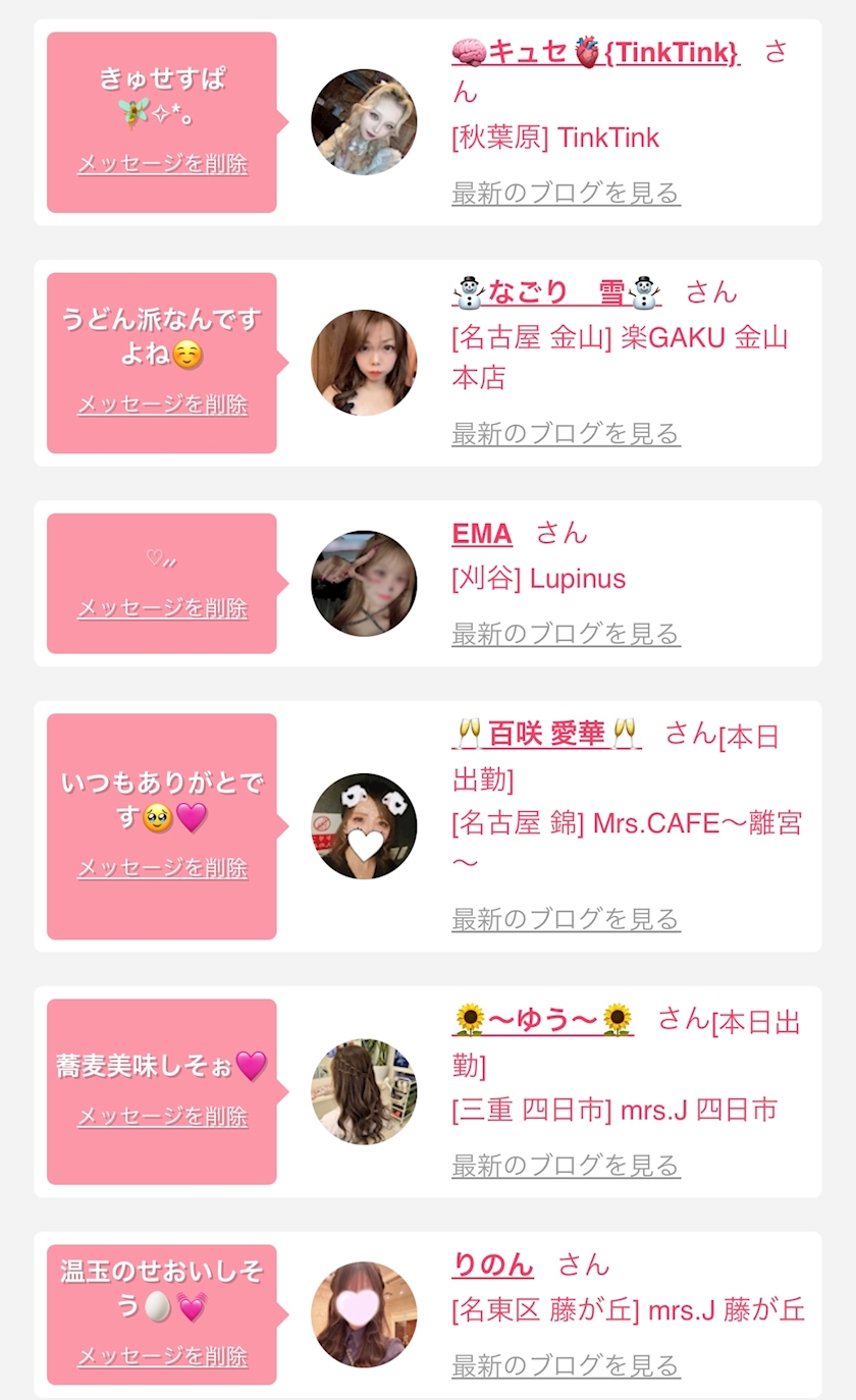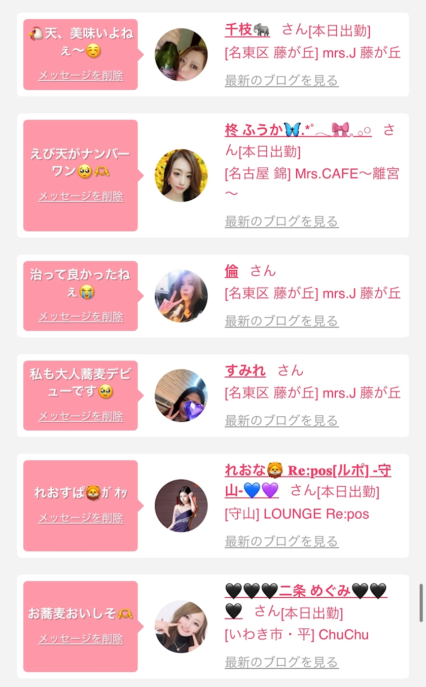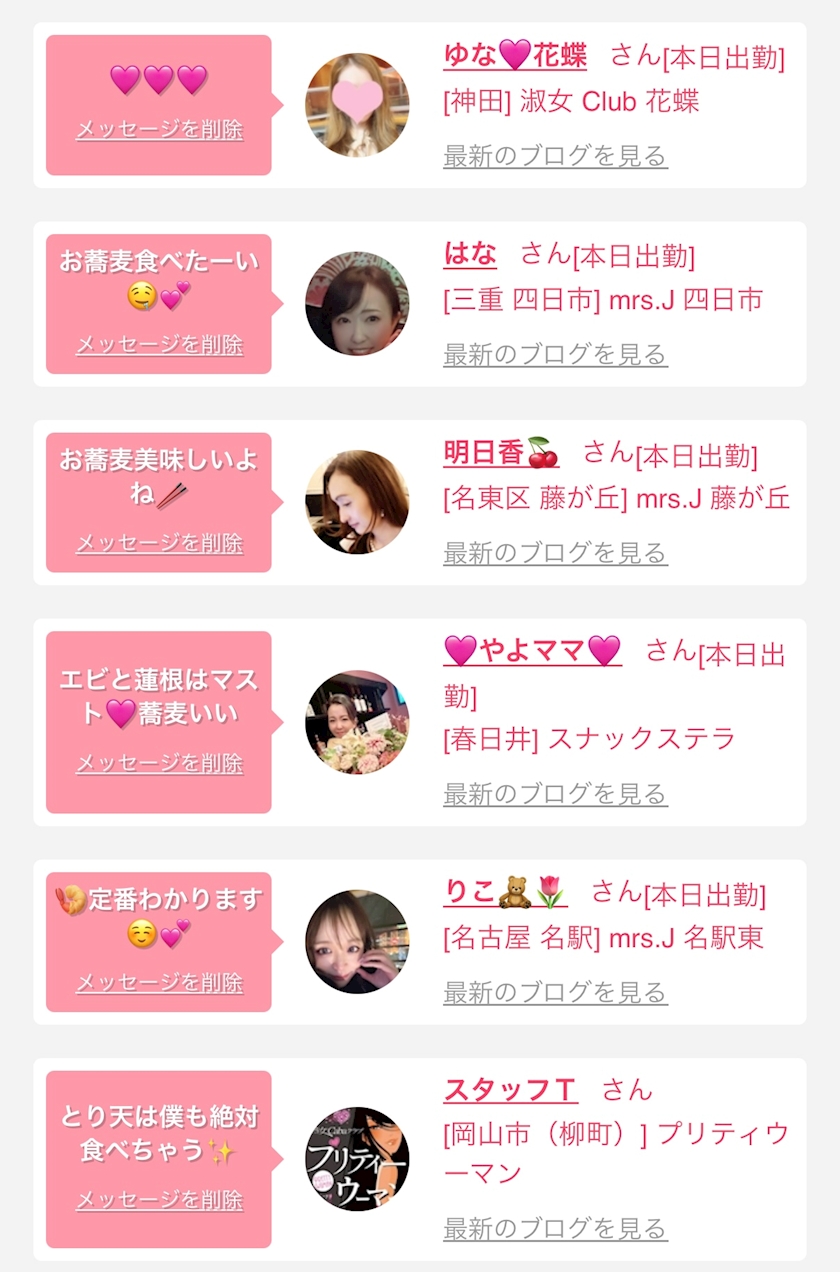 お店の出勤キャストを