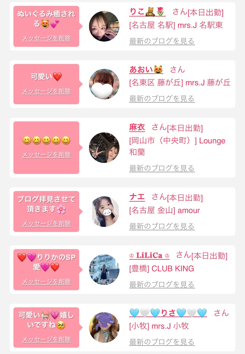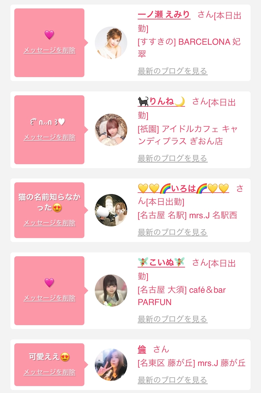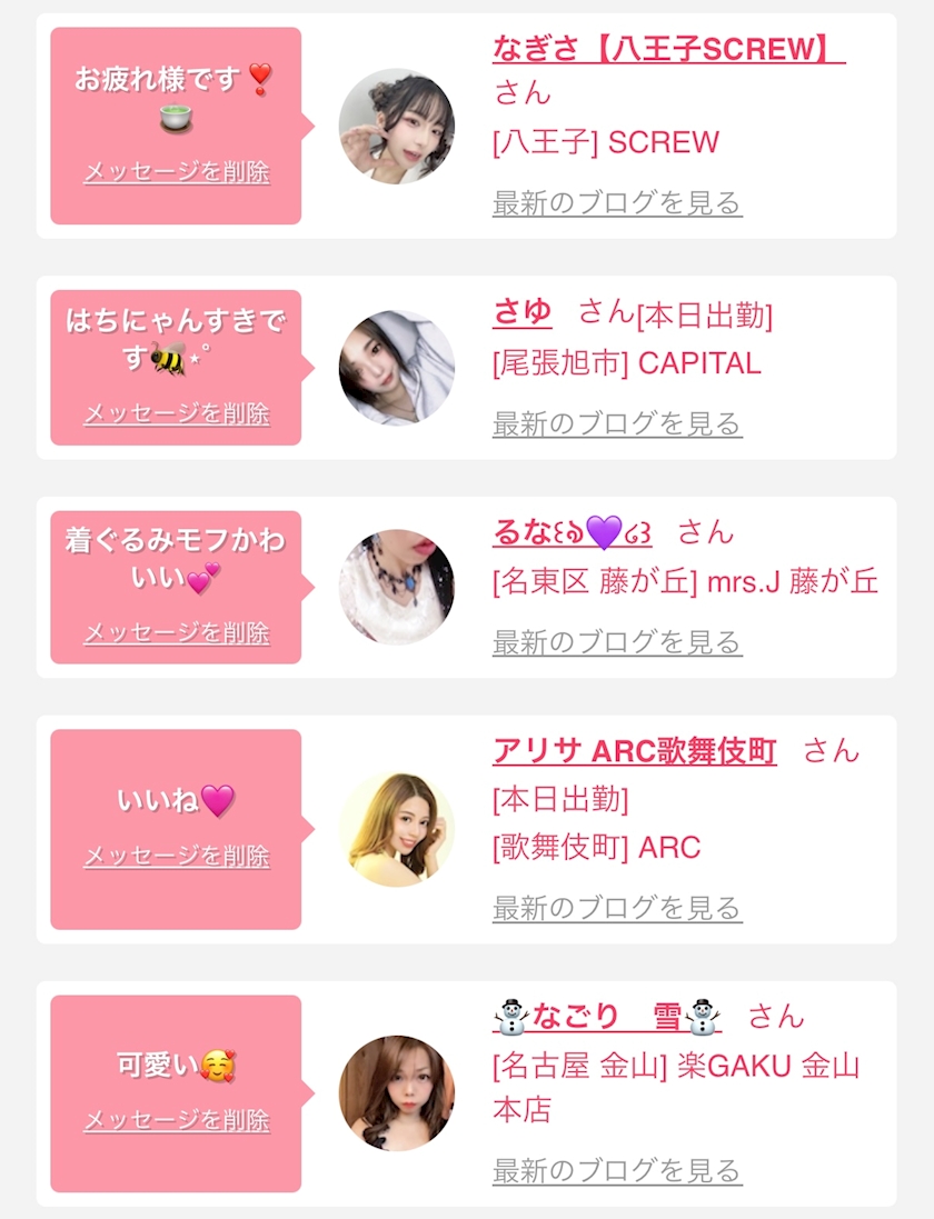 お店の出勤キャストを