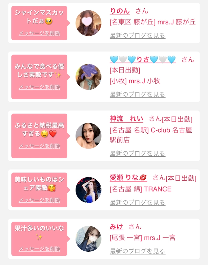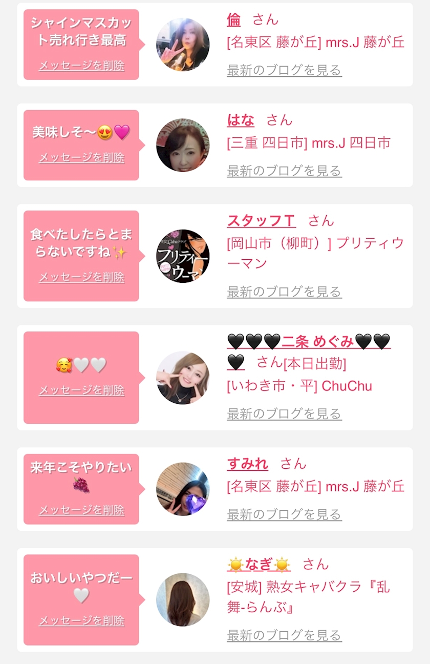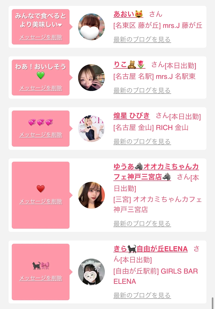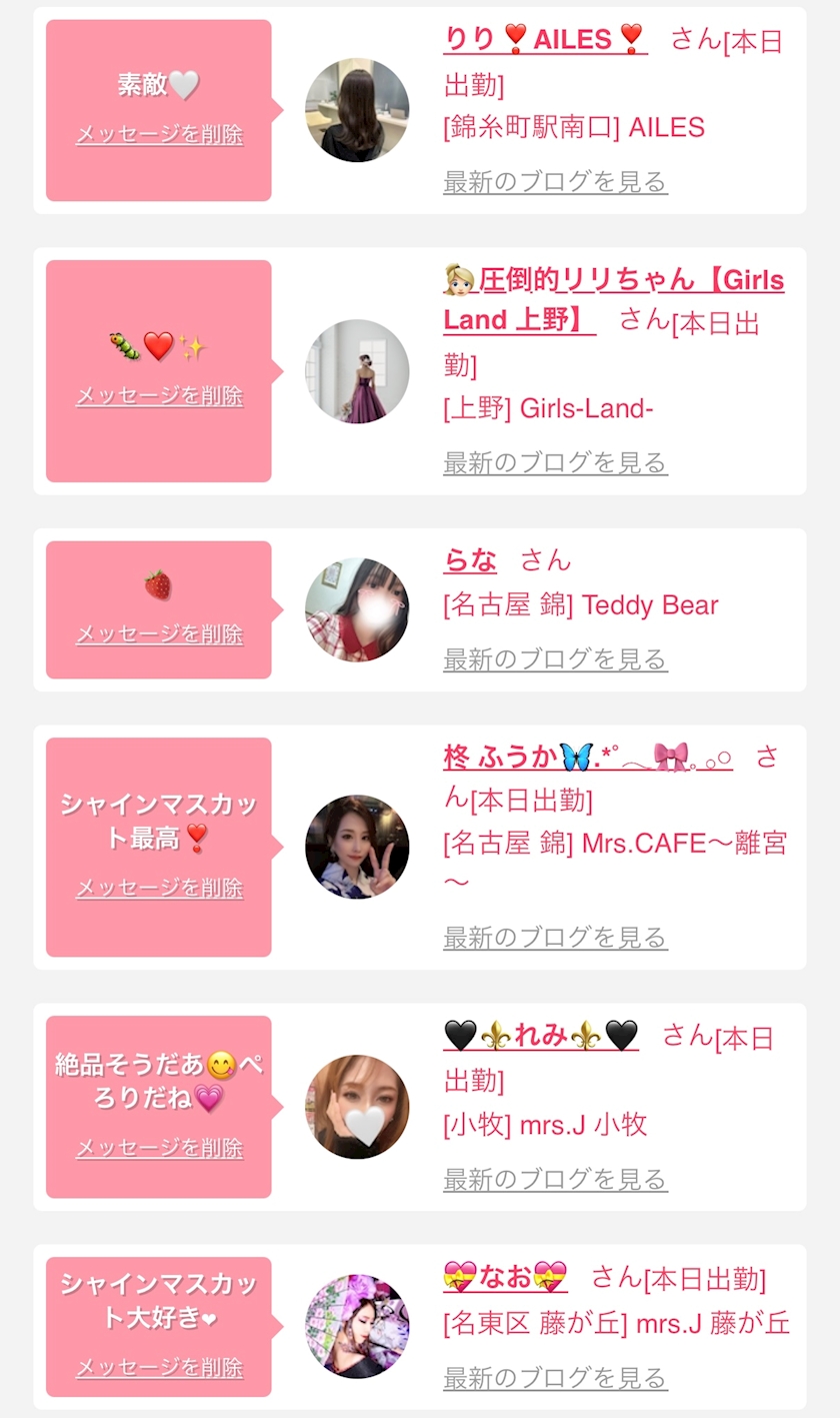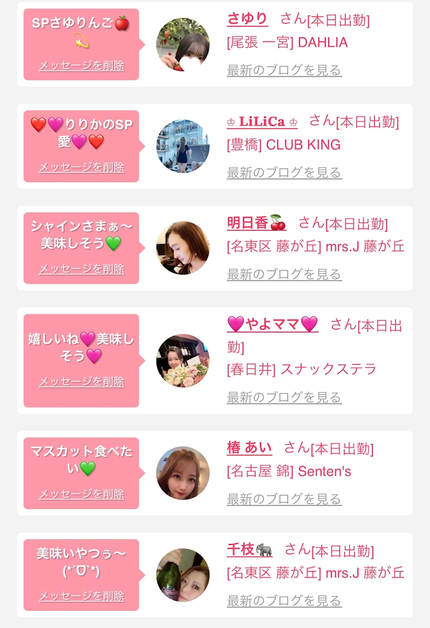 お店の出勤キャストを
