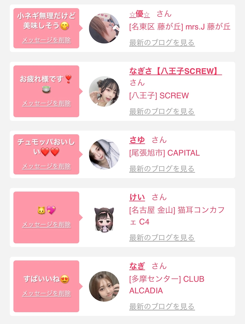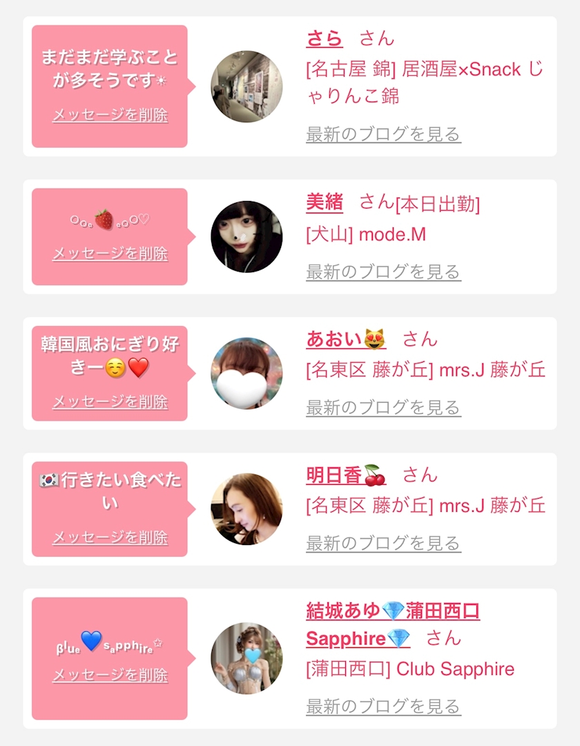 お店の出勤キャストを