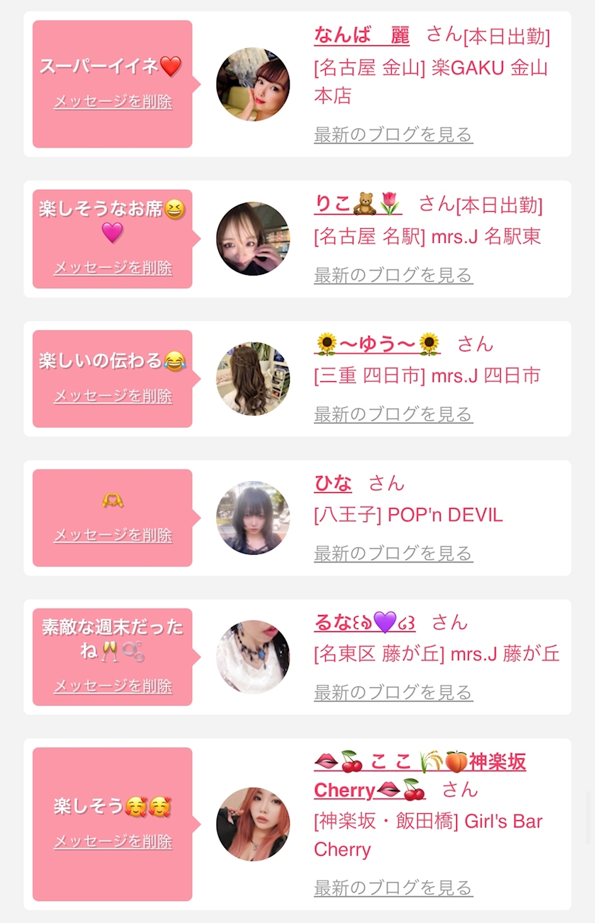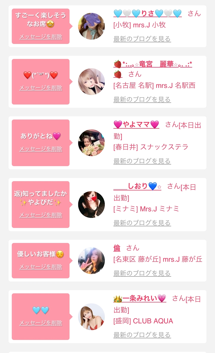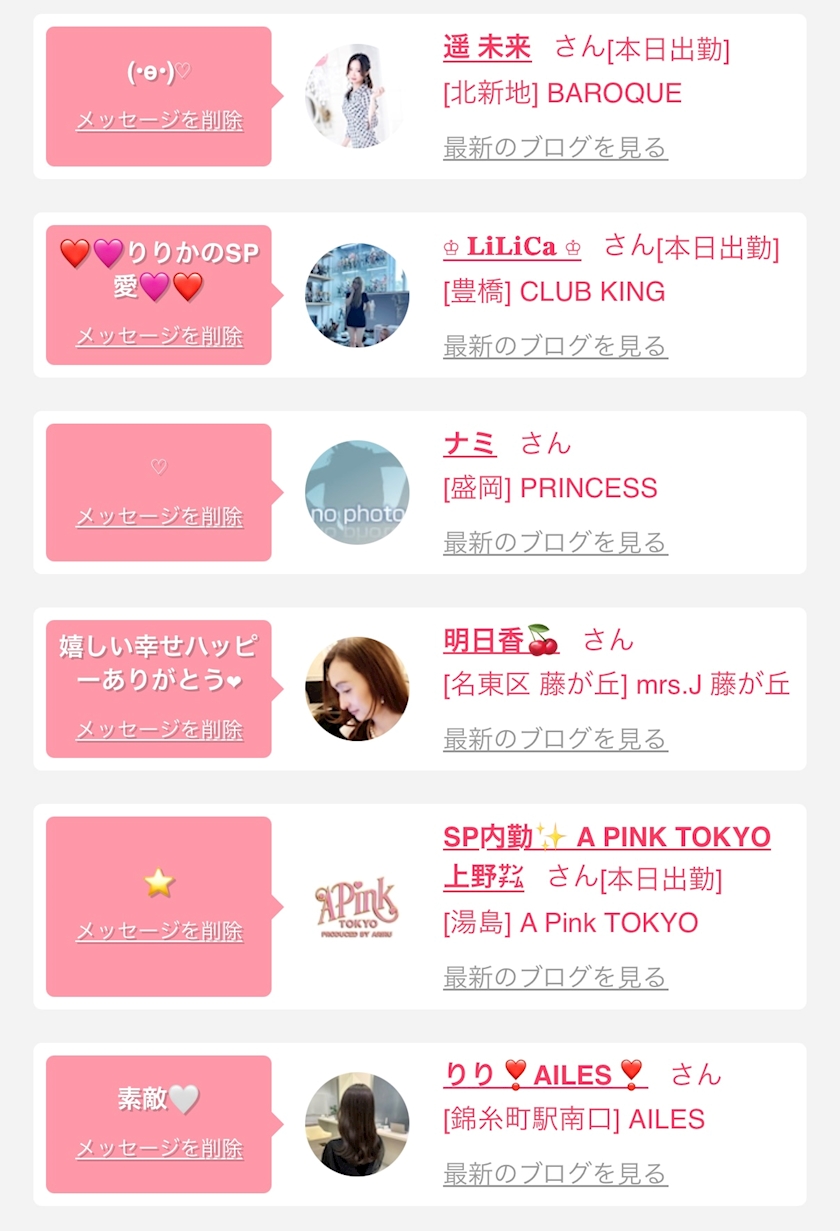 お店の出勤キャストを