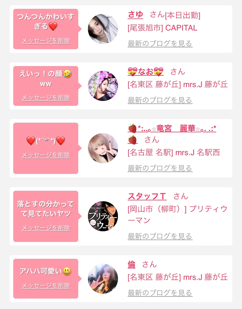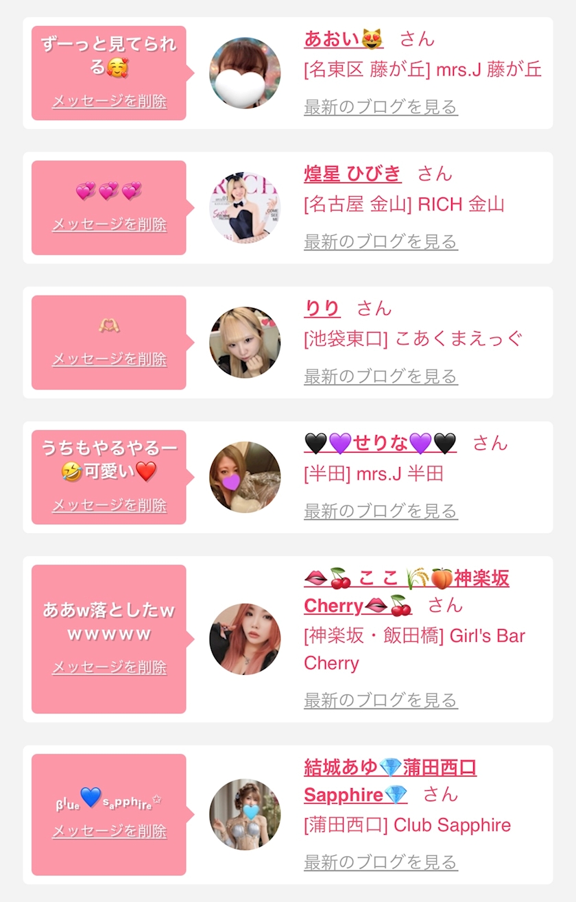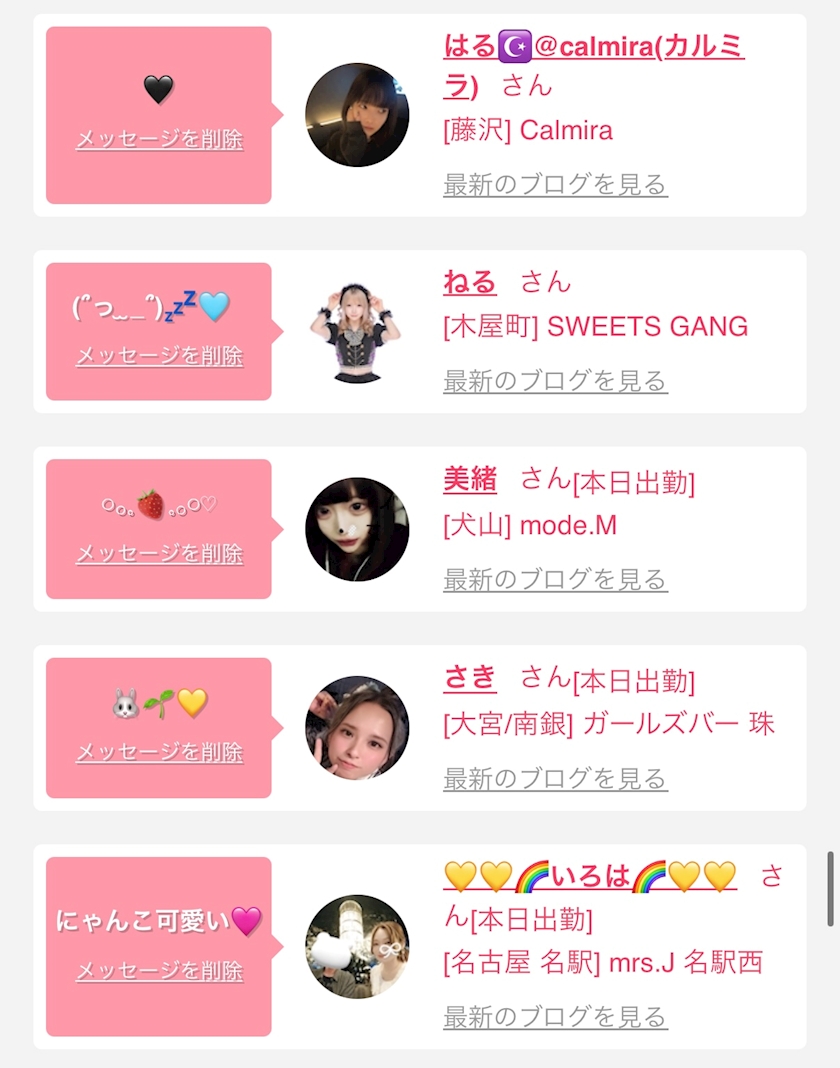 お店の出勤キャストを