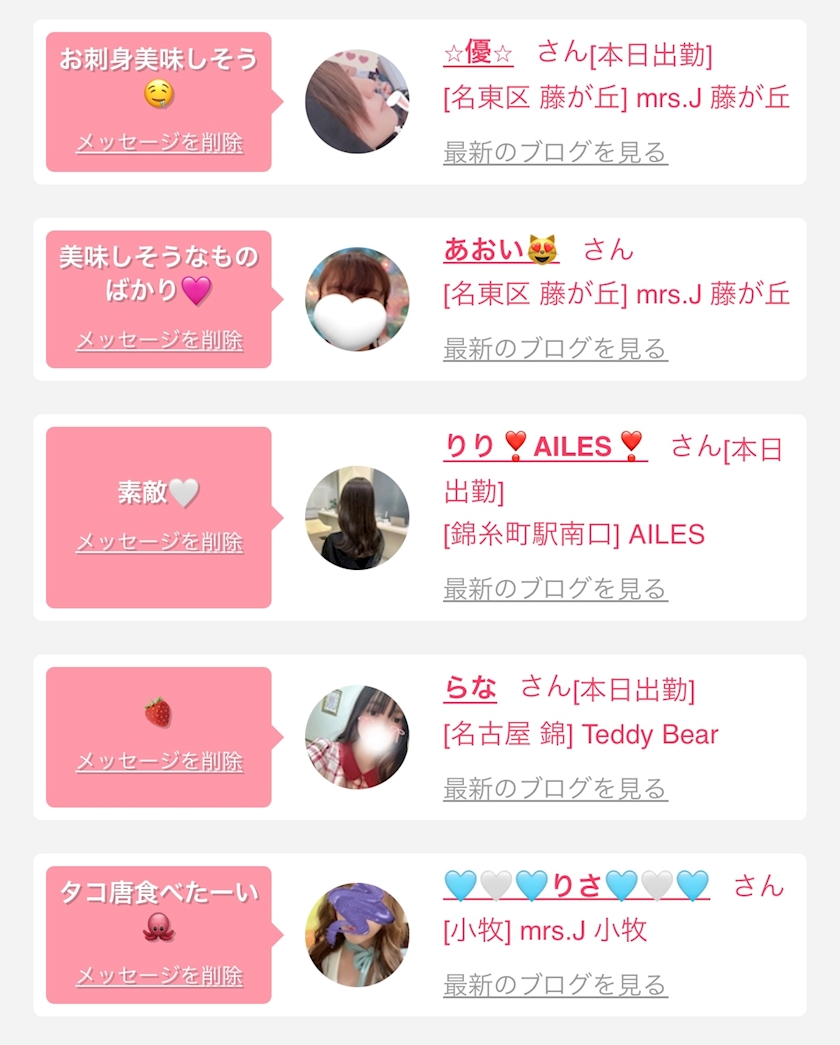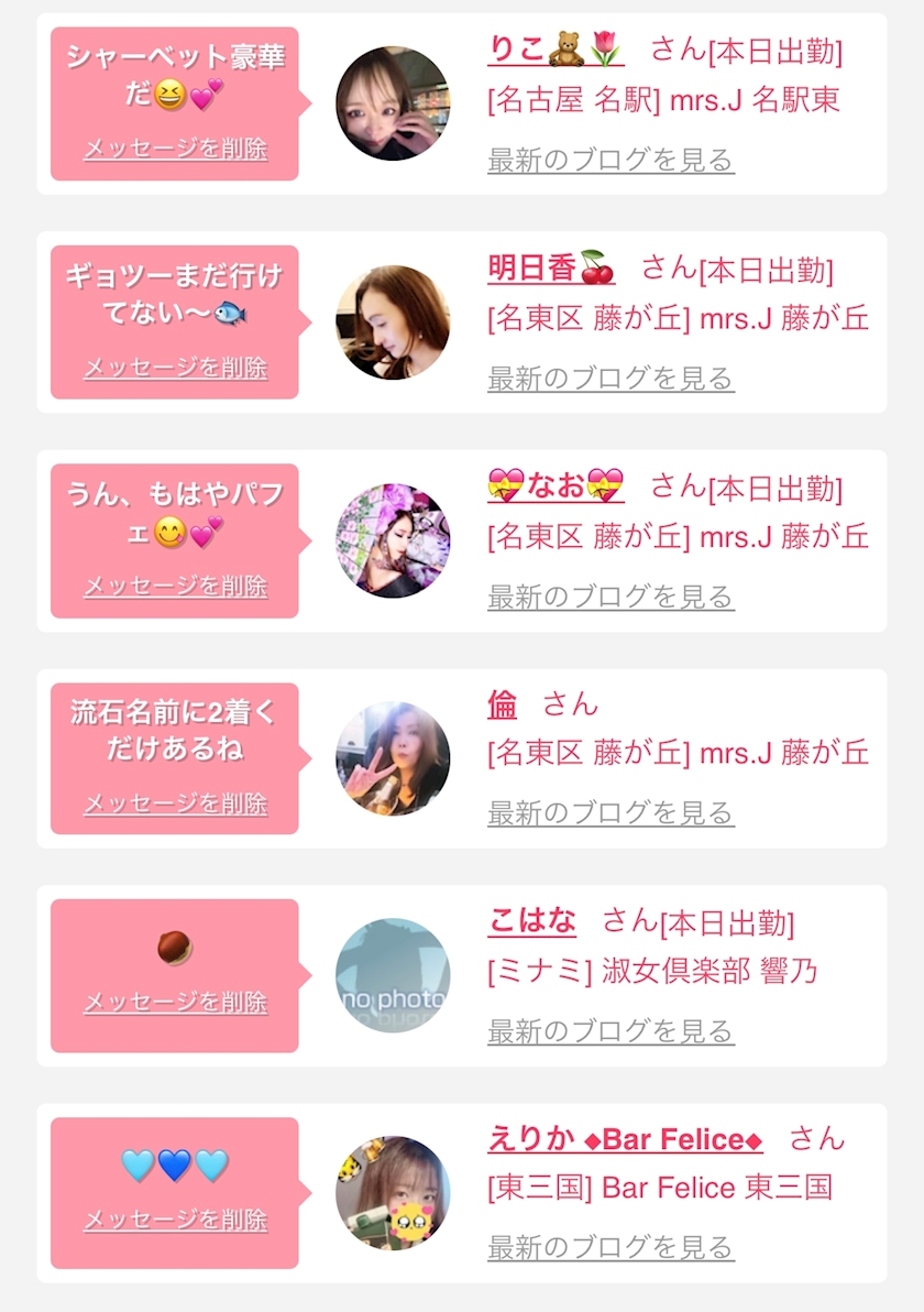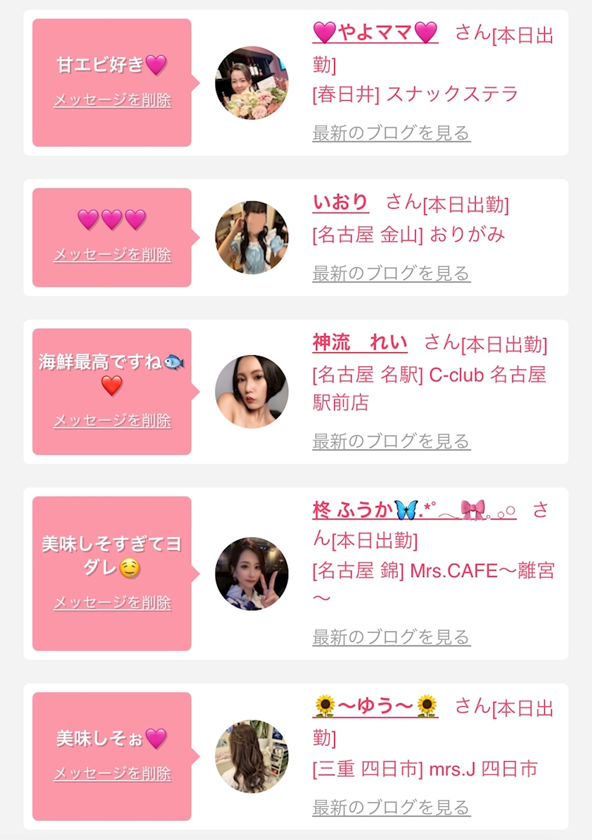 お店の出勤キャストを