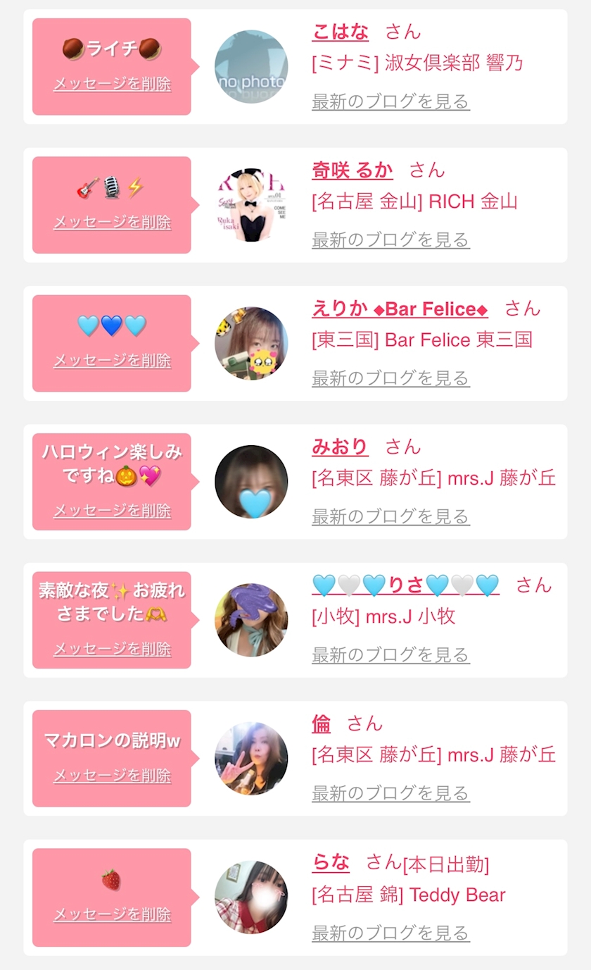 お店の出勤キャストを