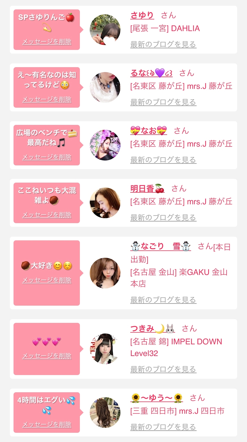 お店の出勤キャストを