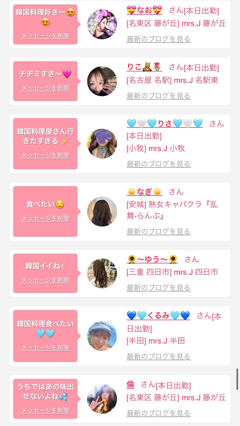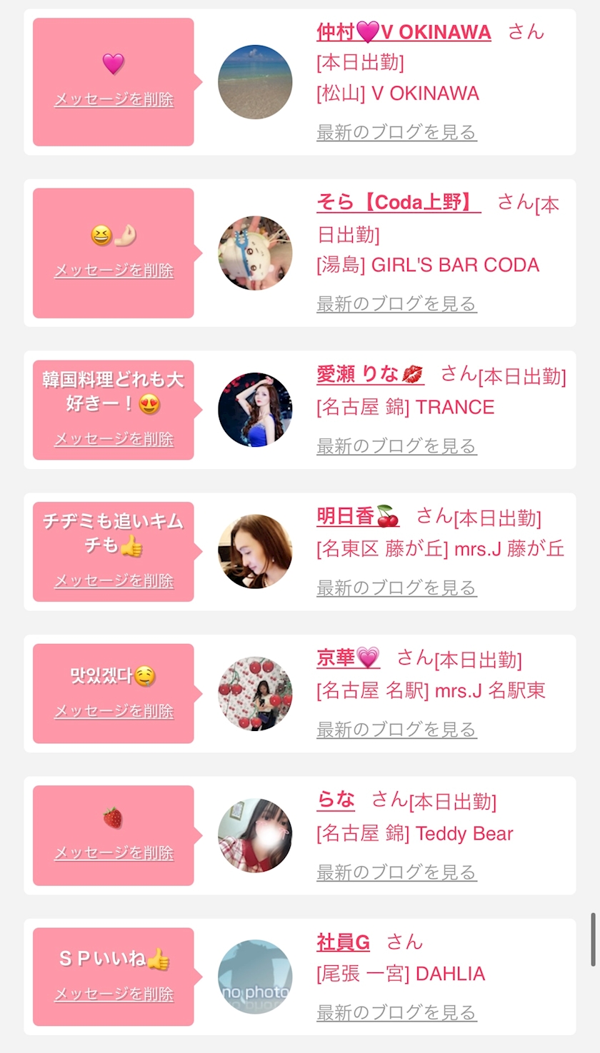 お店の出勤キャストを