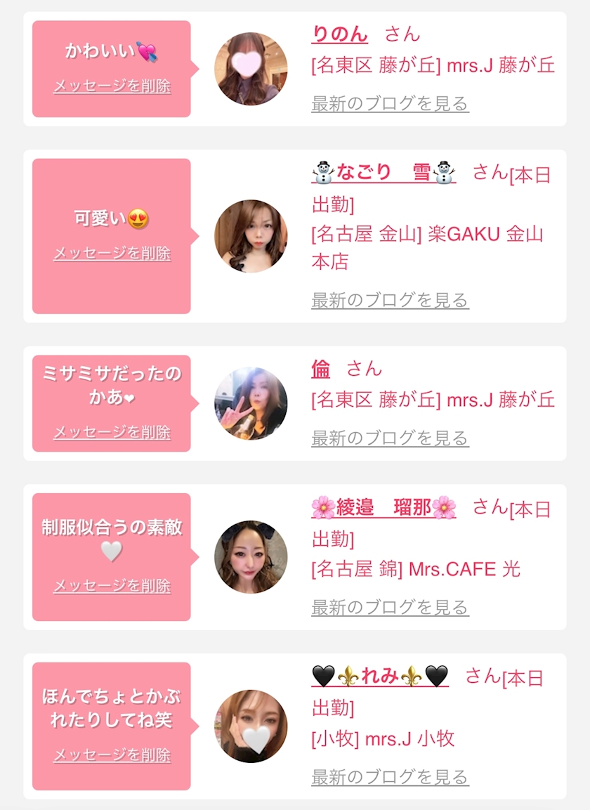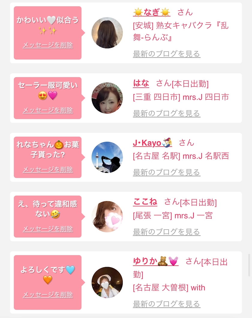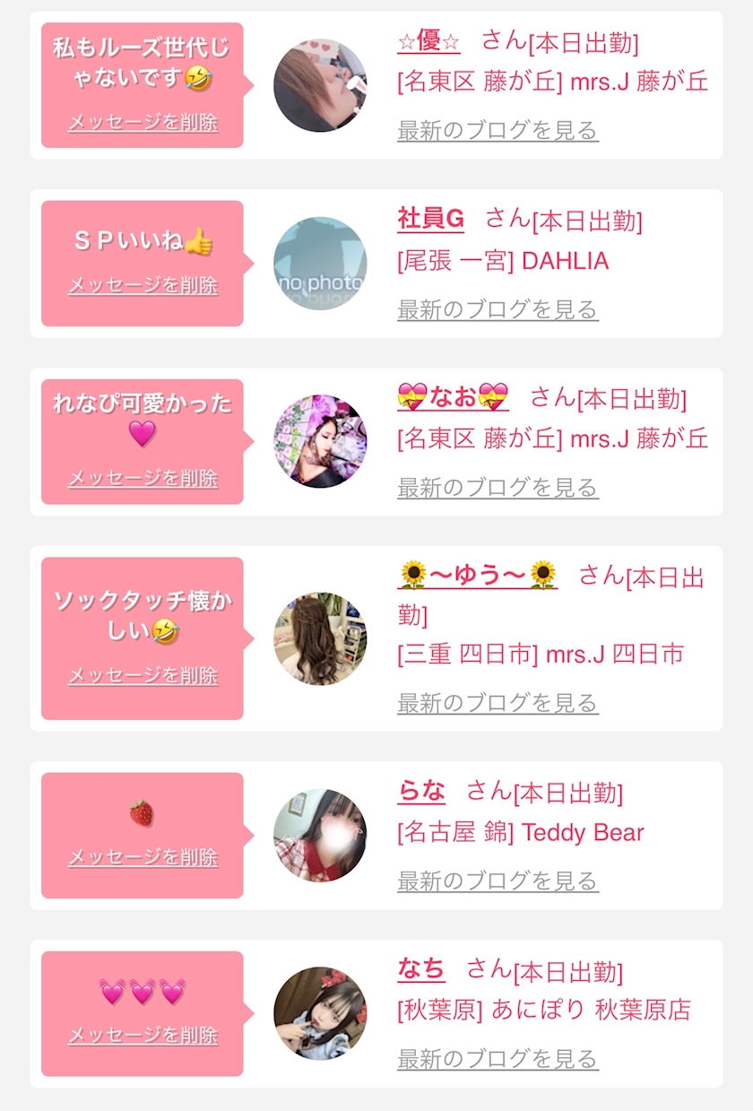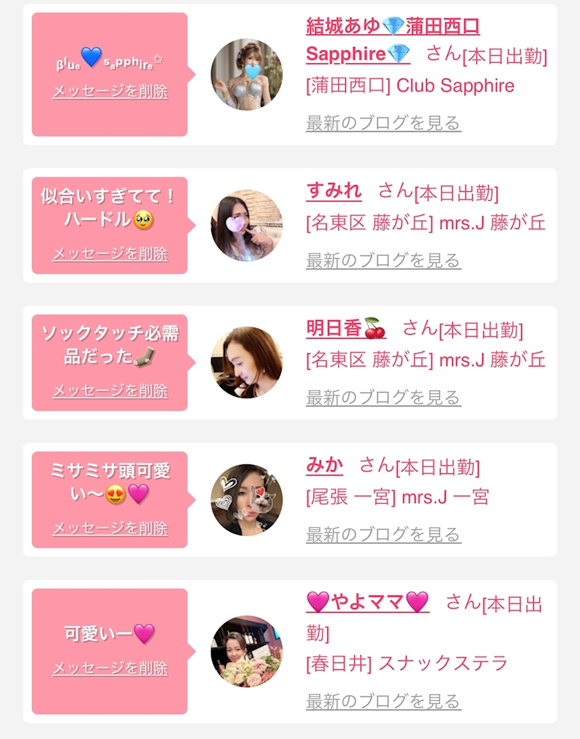 お店の出勤キャストを