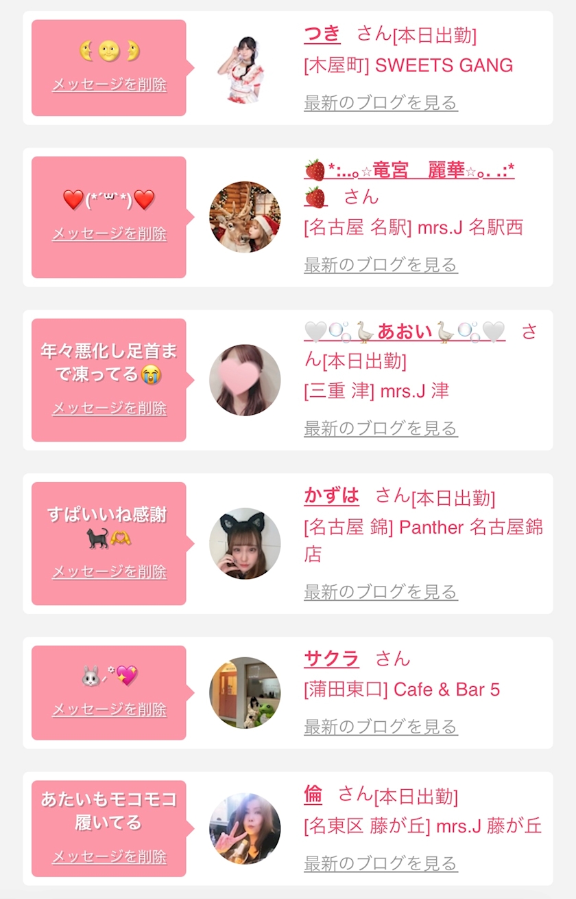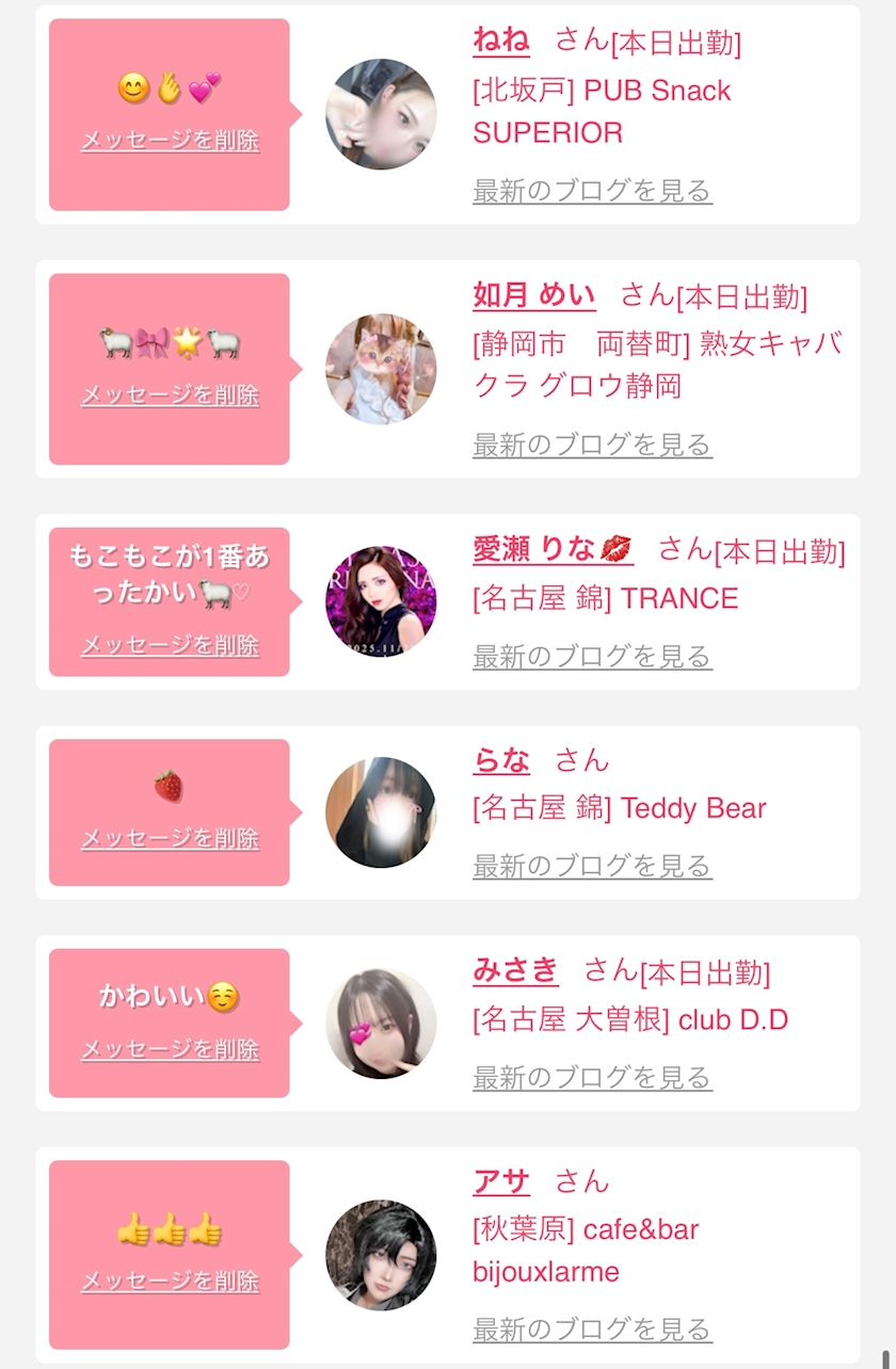 お店の出勤キャストを