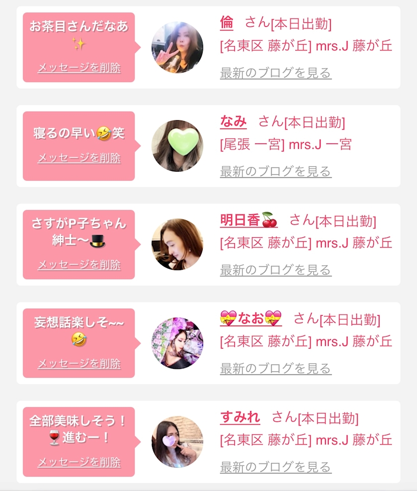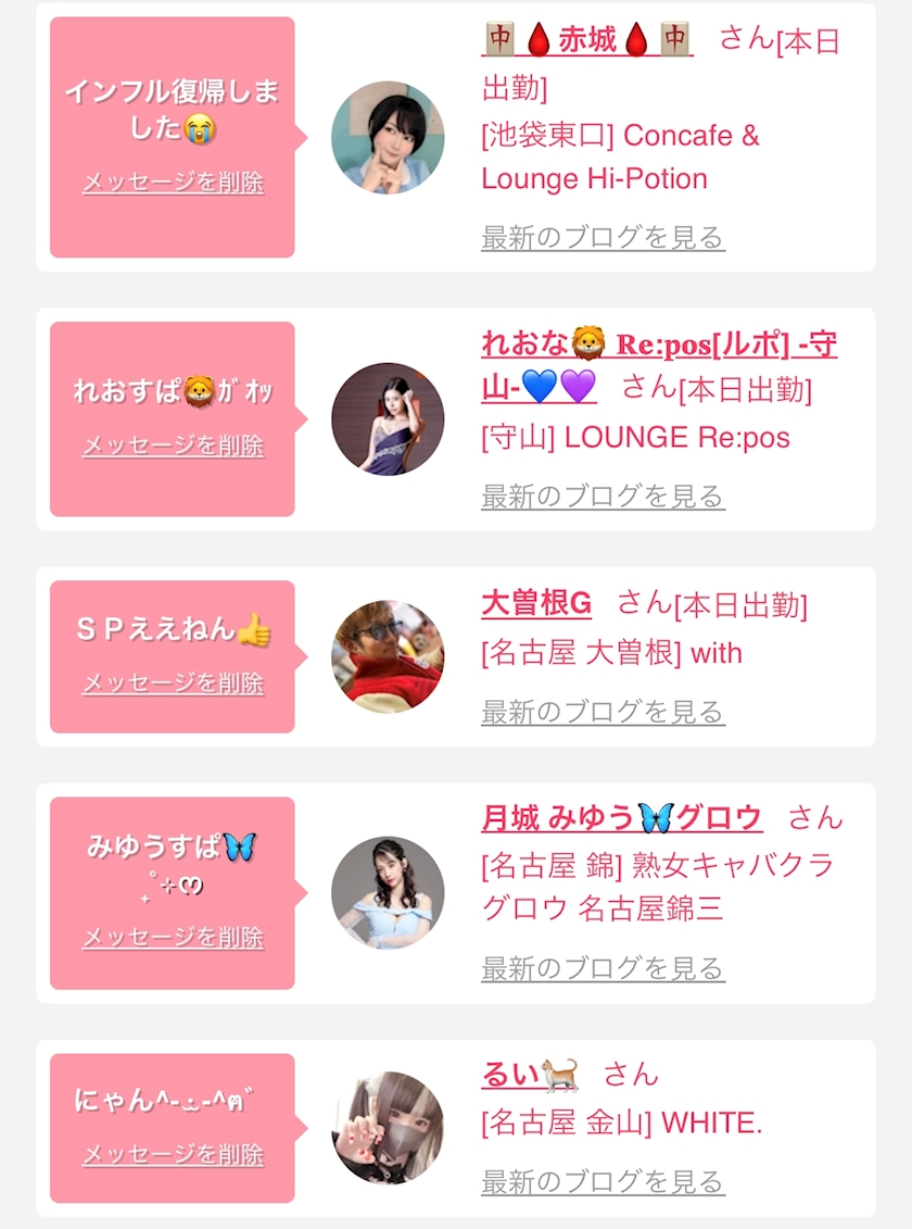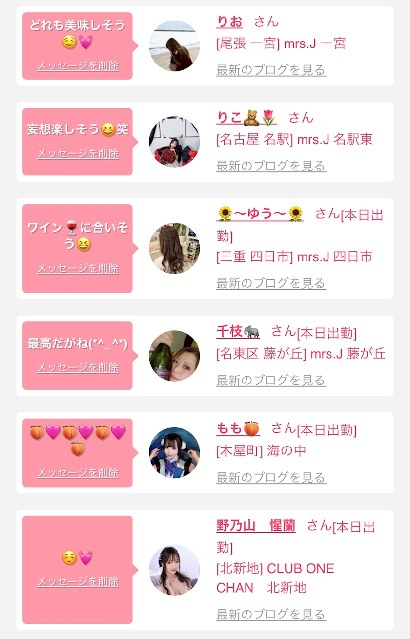 お店の出勤キャストを