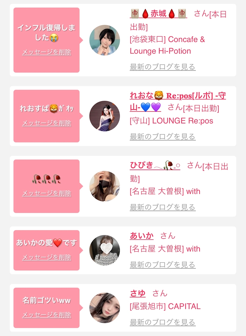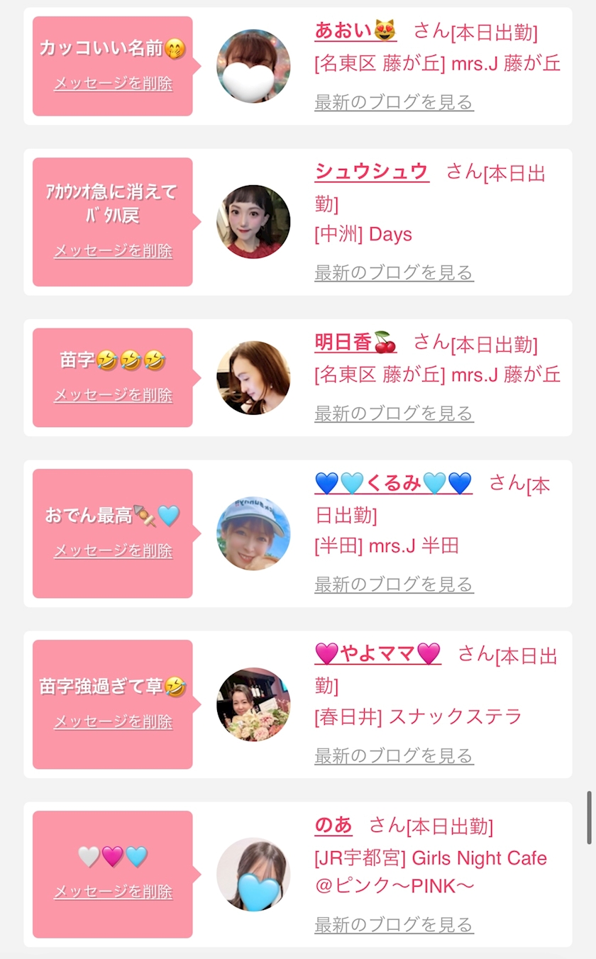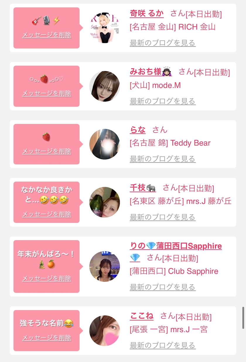 お店の出勤キャストを