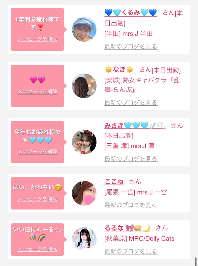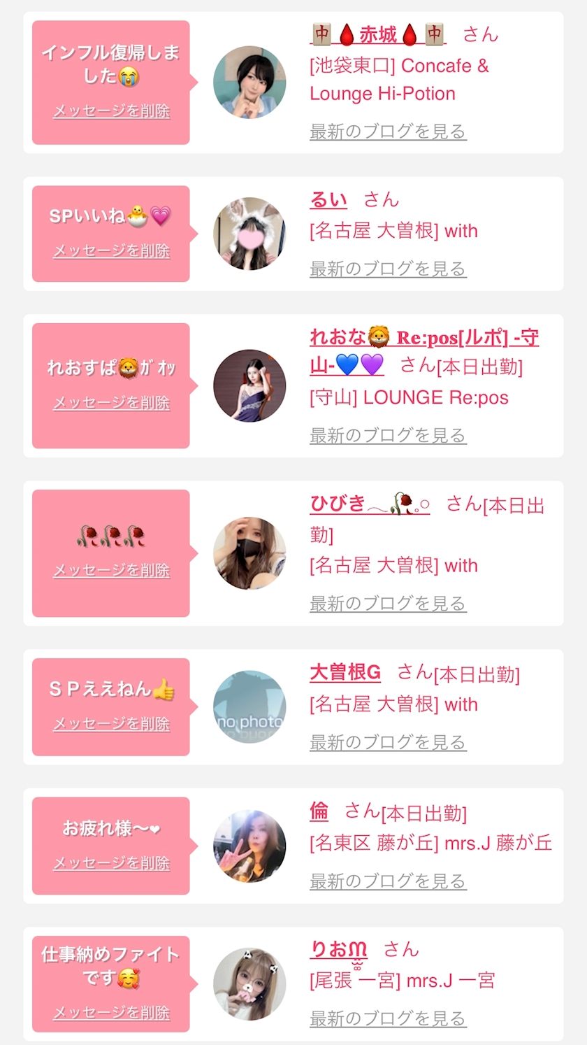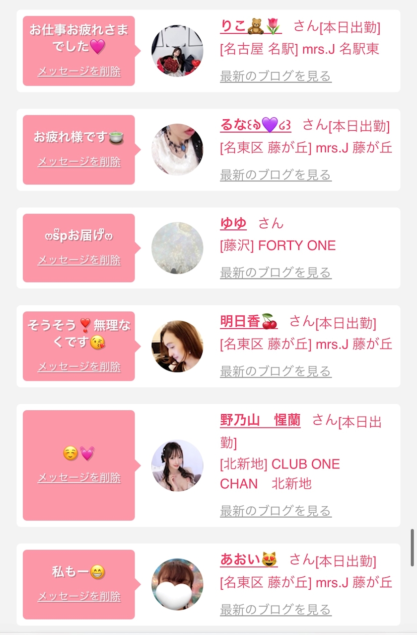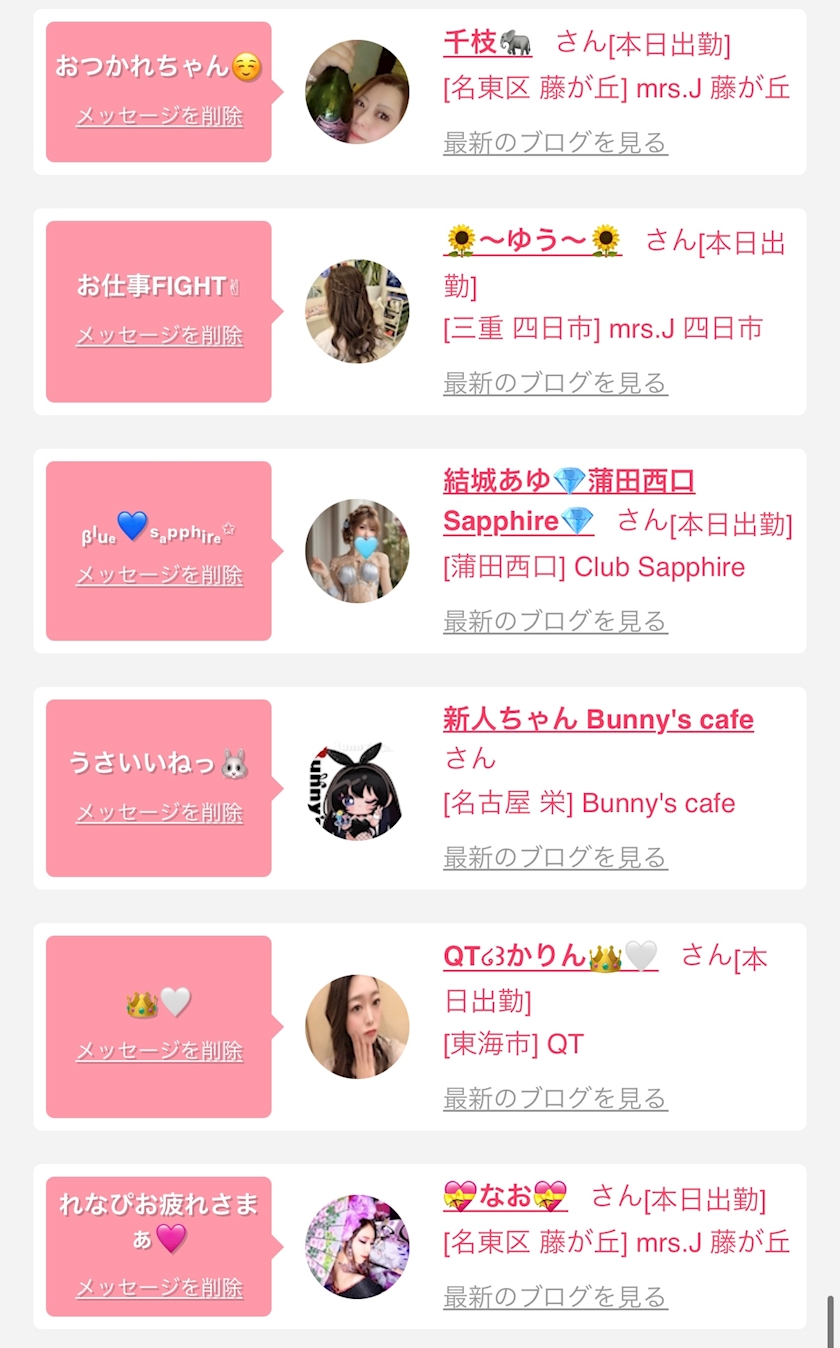お店の出勤キャストを