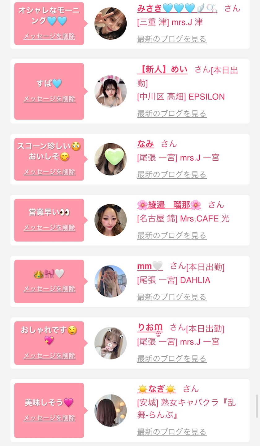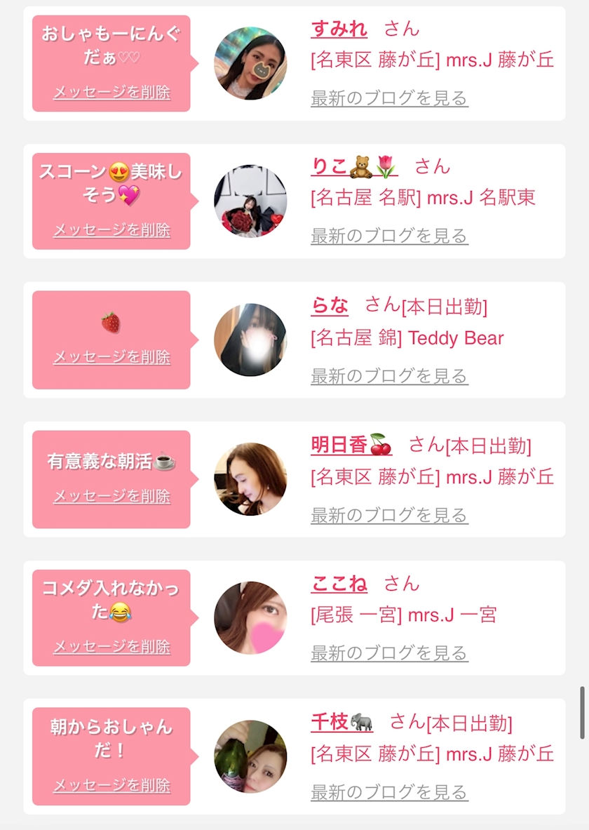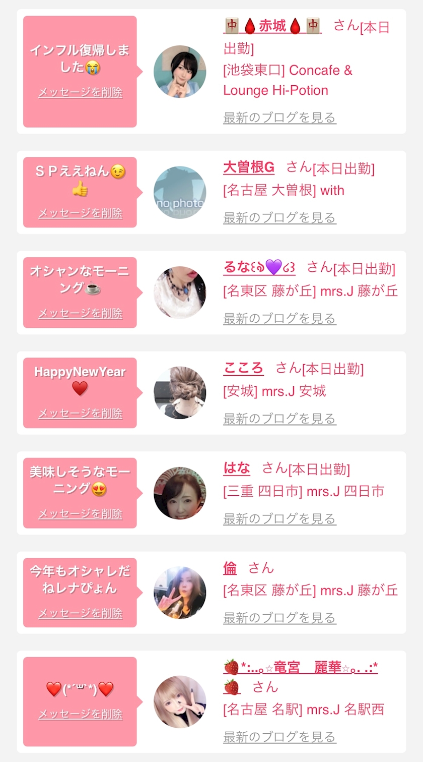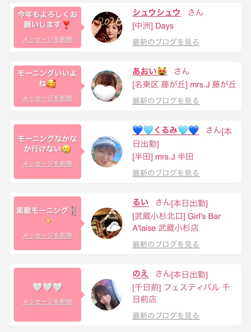 お店の出勤キャストを