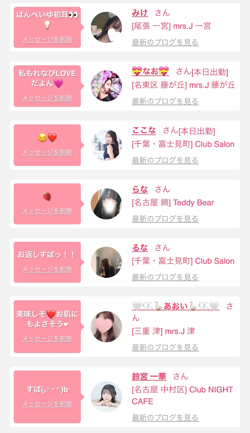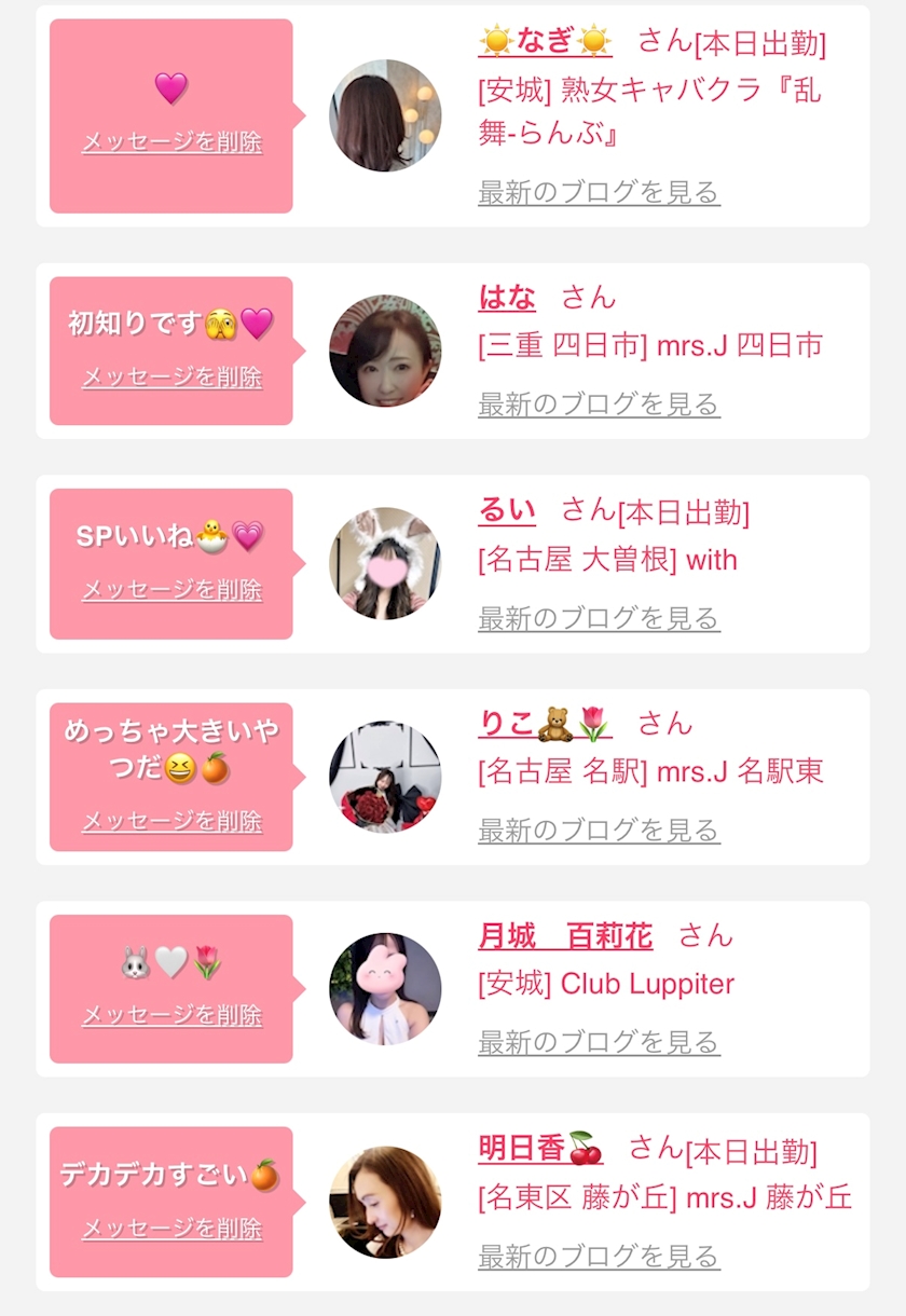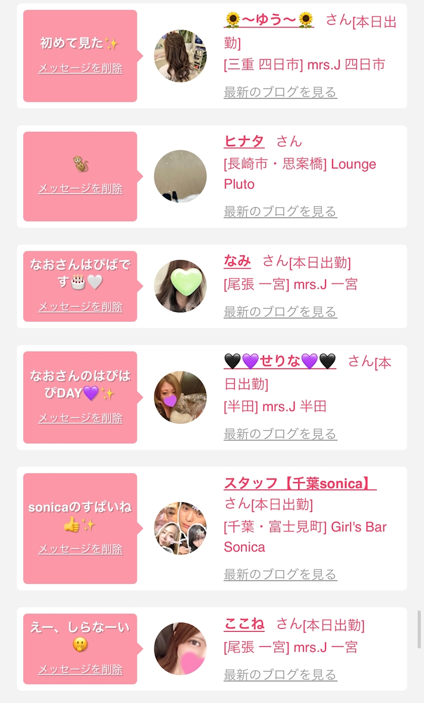 お店の出勤キャストを