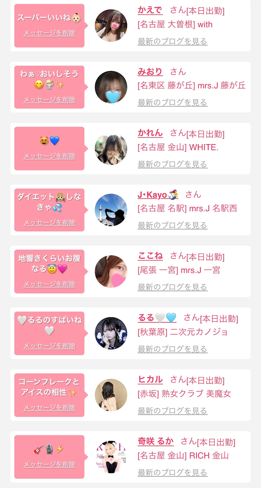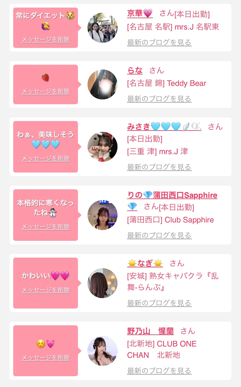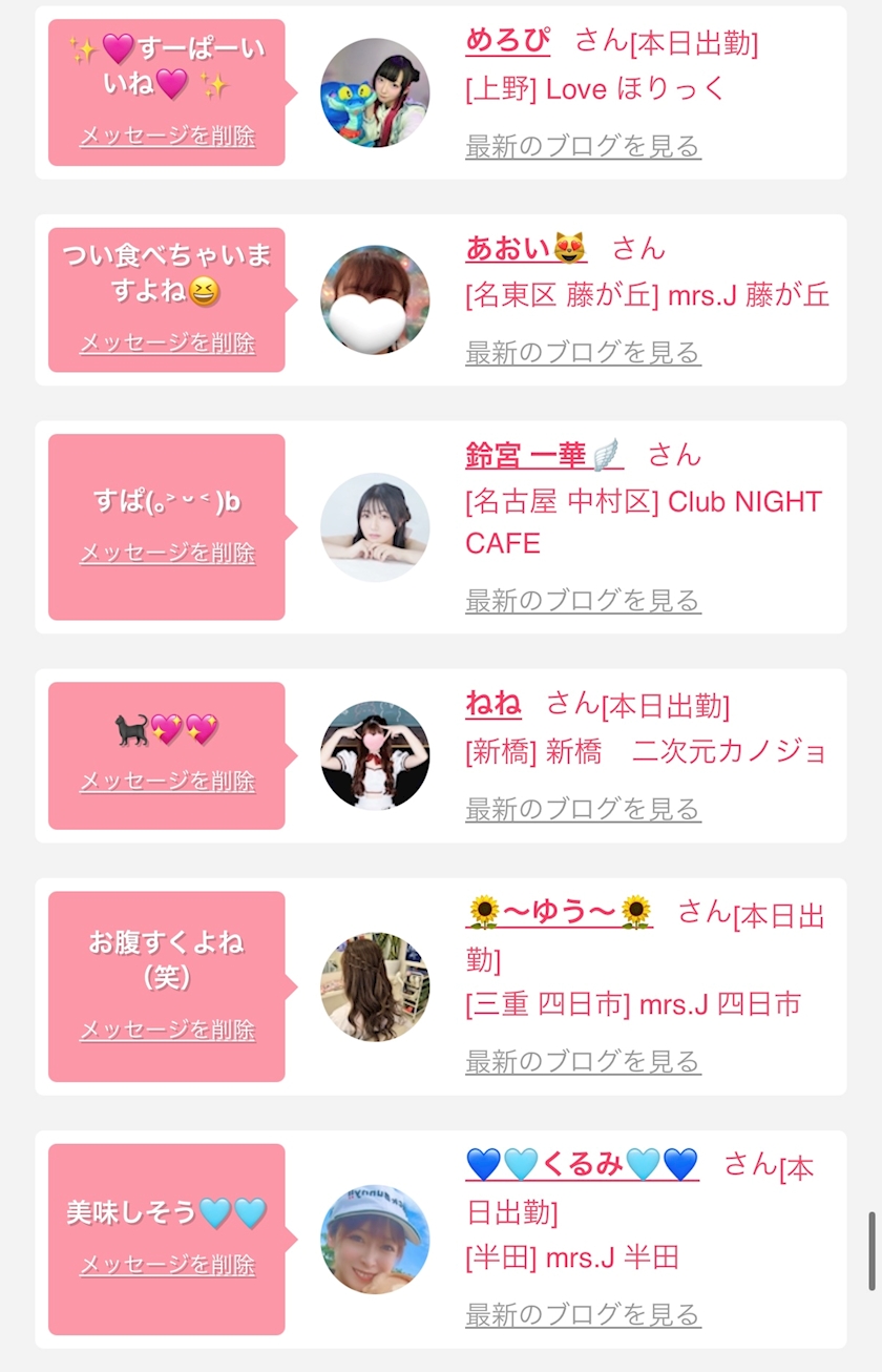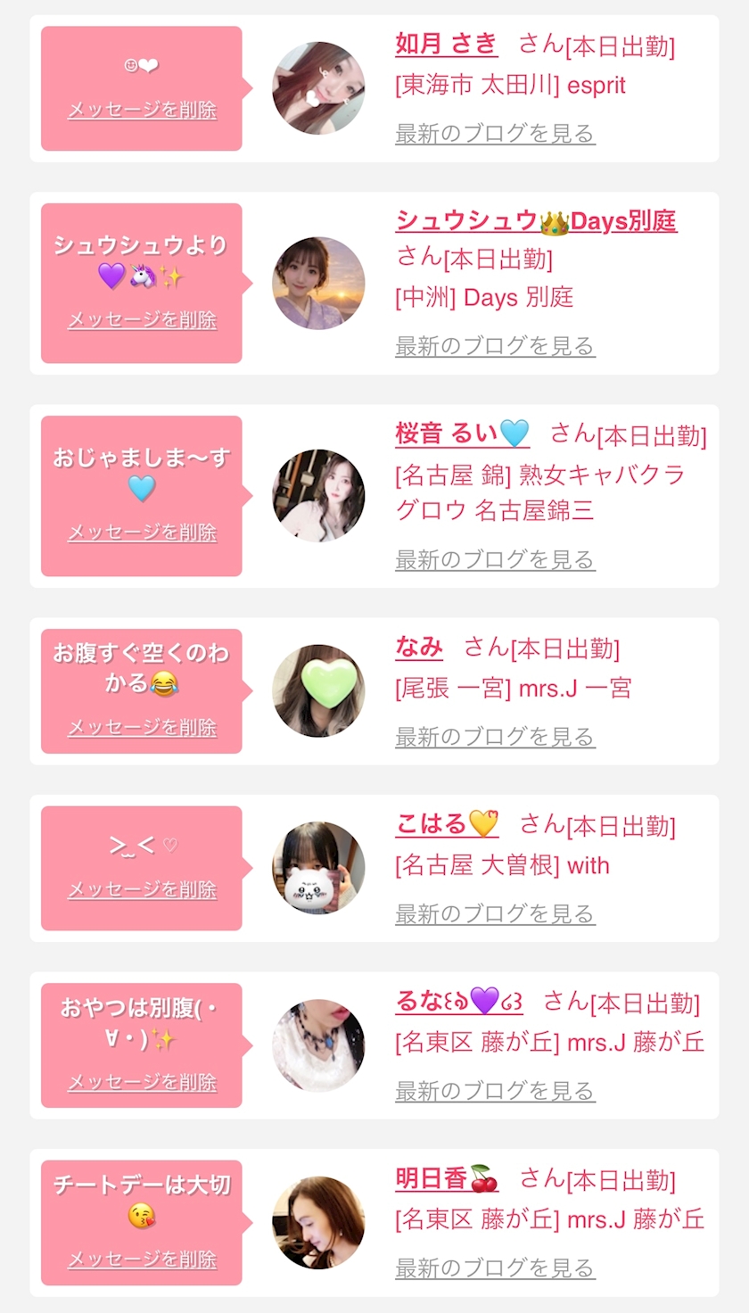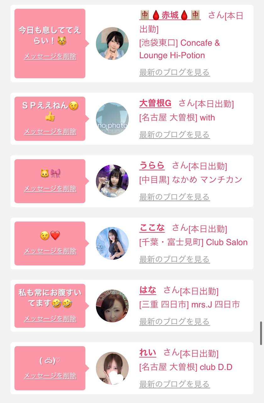 お店の出勤キャストを