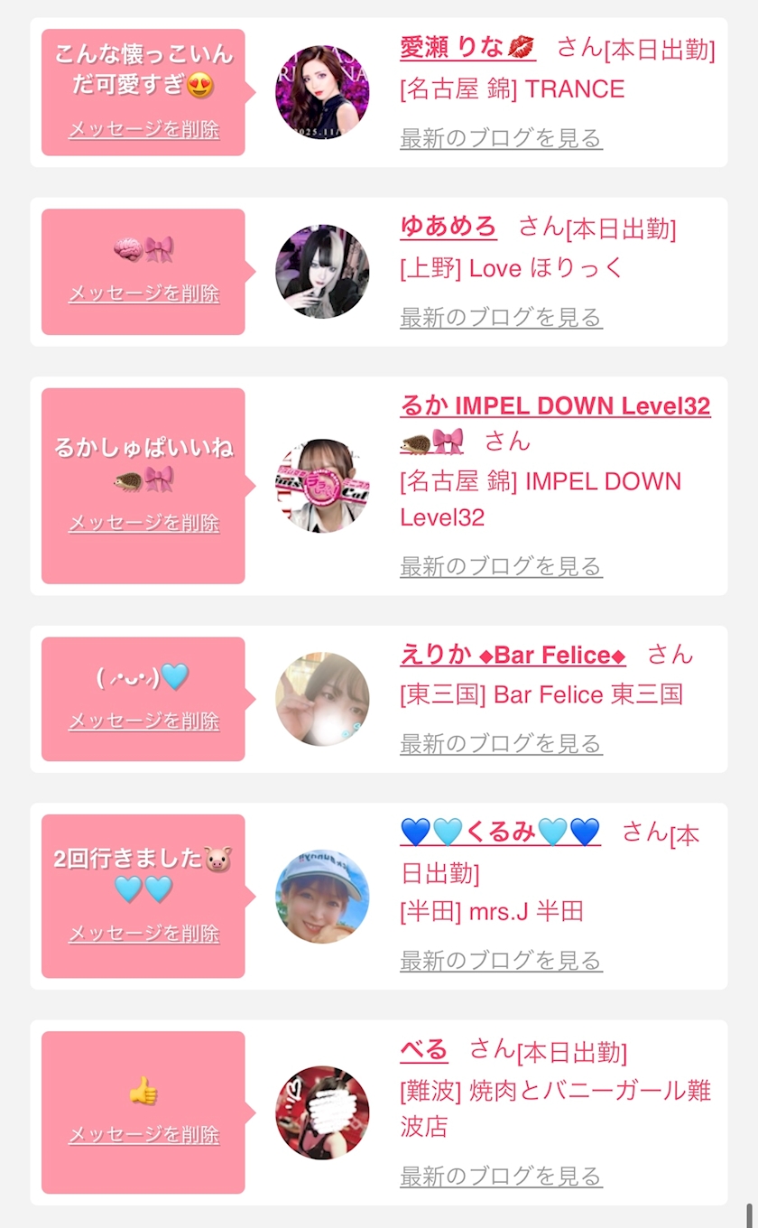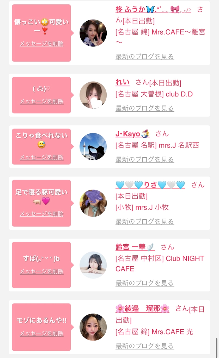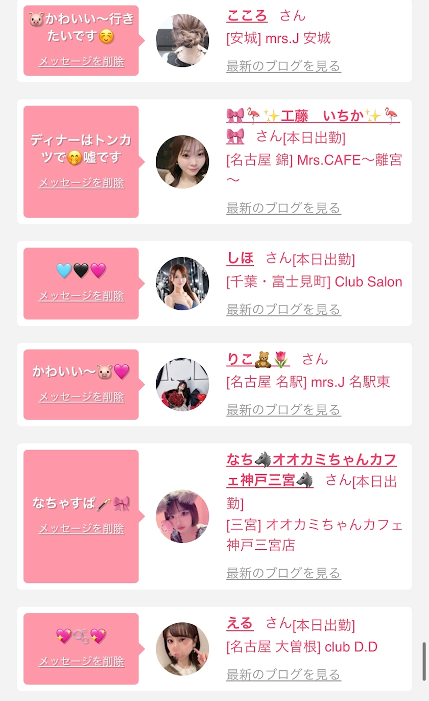 お店の出勤キャストを