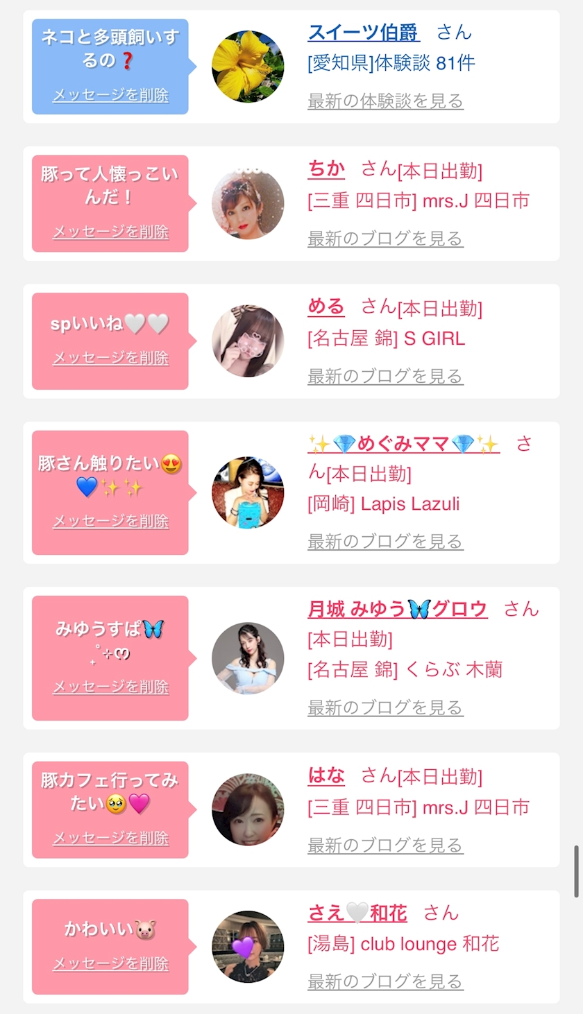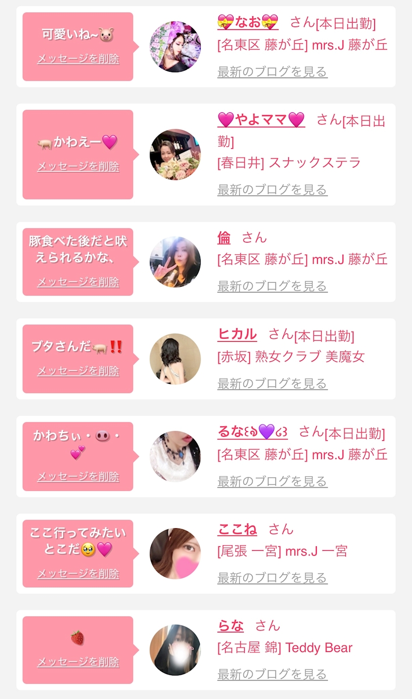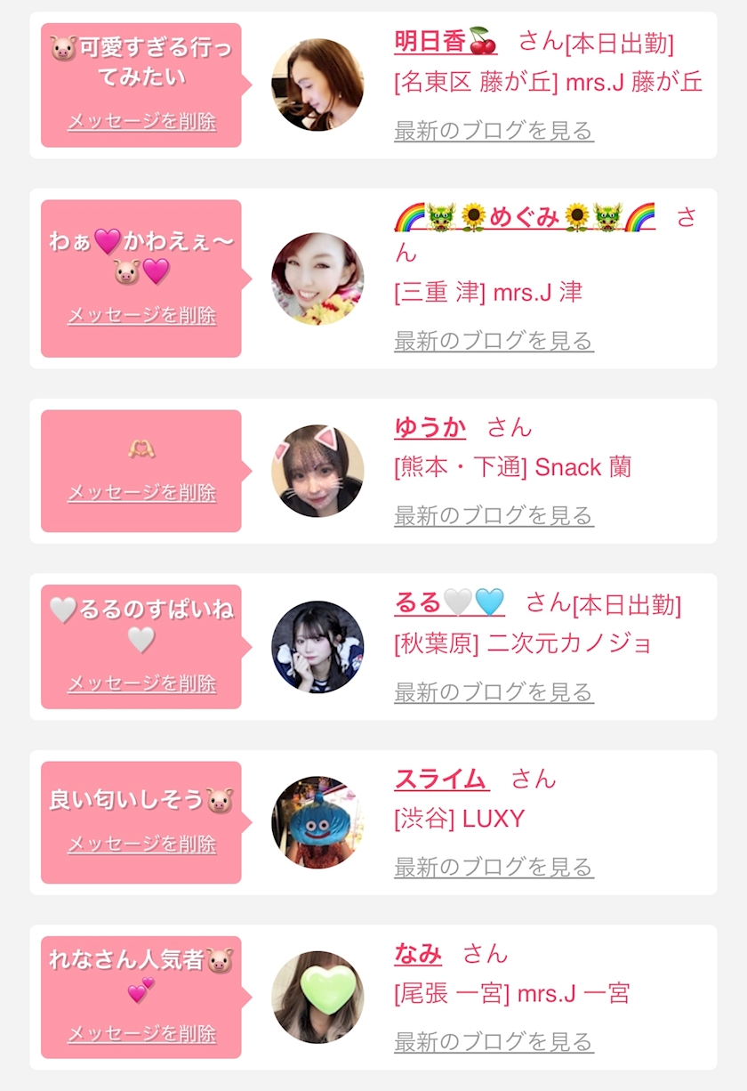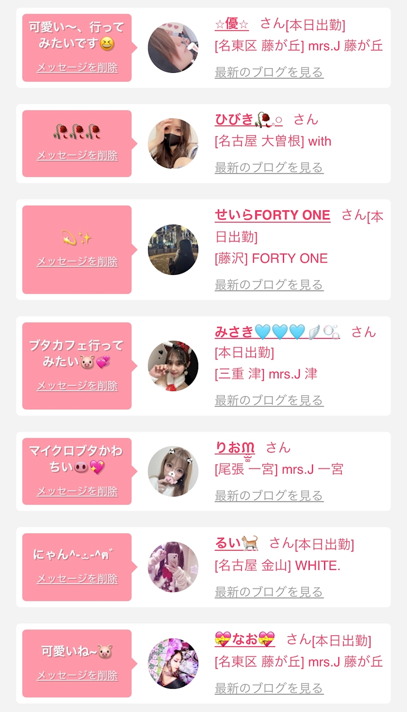 お店の出勤キャストを